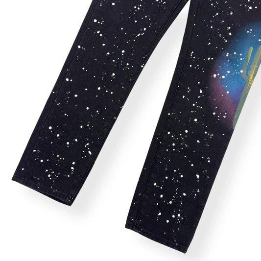 PALM ANGELS CACTUS 5 POCKET DENIM JEANS BLACK / WHITE / BLUE W33”