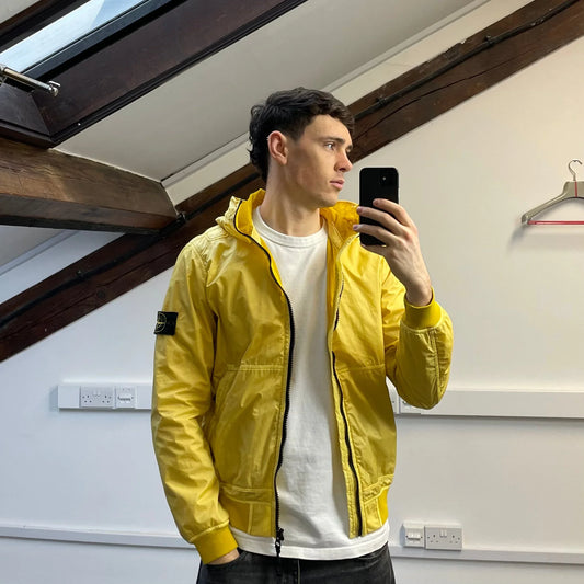 Stone Island Yellow AW18 Lamy Flock Hooded Jacket