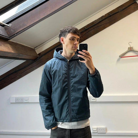 Prada Sport Blue Nylon 2007 Padded Hooded Windbreaker Jacket
