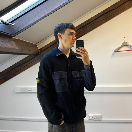 Stone Island Navy AW05 Pocket-Detailed Wool Zip Jacket