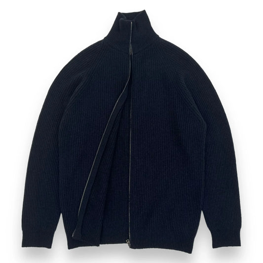 THOM SWEENEY ZIP-UP CASHMERE RIBBED SWEATER NAVY L