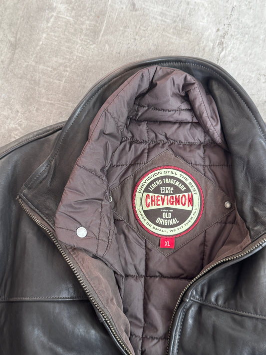 Vintage 1990s Leather Funnel Neck Hooded Bomber Jacket – S