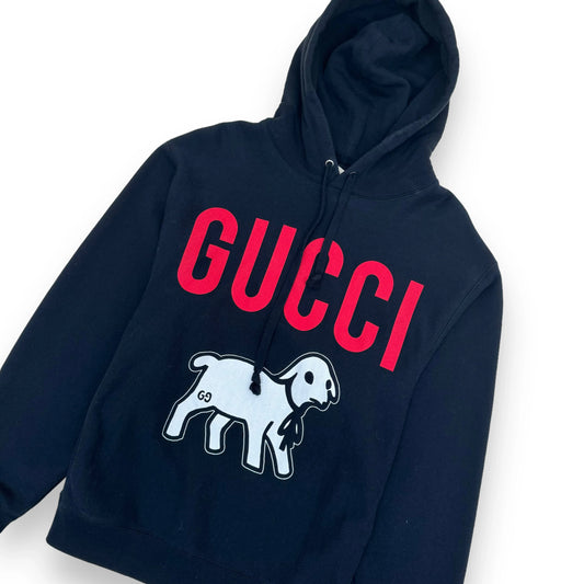 GUCCI LAMB-PRINT COTTON HOODED SWEATSHIRT BLACK L