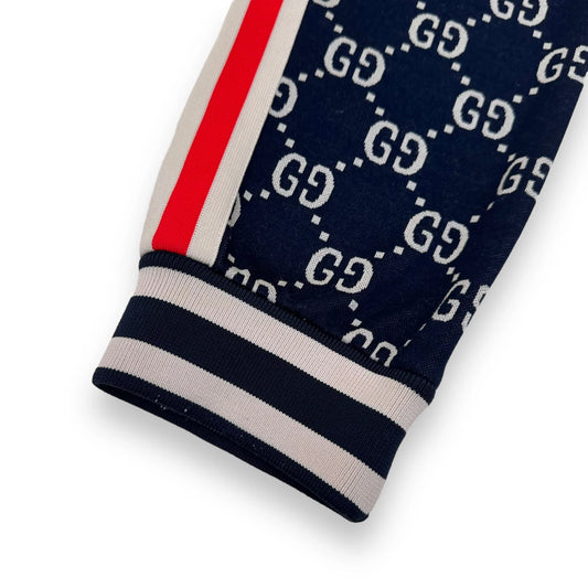 GUCCI GG LOGO-INTARSIA COTTON ZIP-UP TRACK JACKET NAVY L