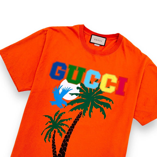GUCCI COTTON PALM TREE PRINT T-SHIRT ORANGE L