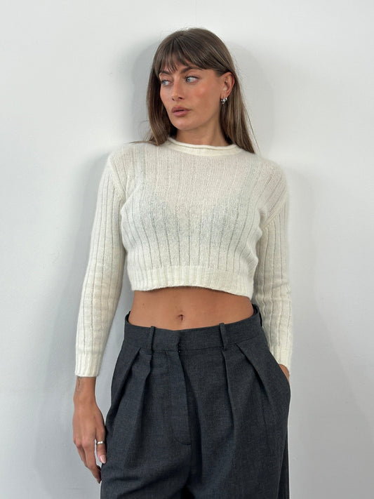 Vintage 1990s Angora Wool Cropped Jumper - S