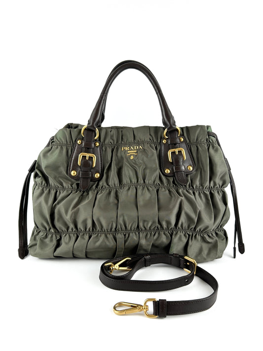Prada Khaki Tessuto Gaufre Nylon Satchel Bag (with extension strap)