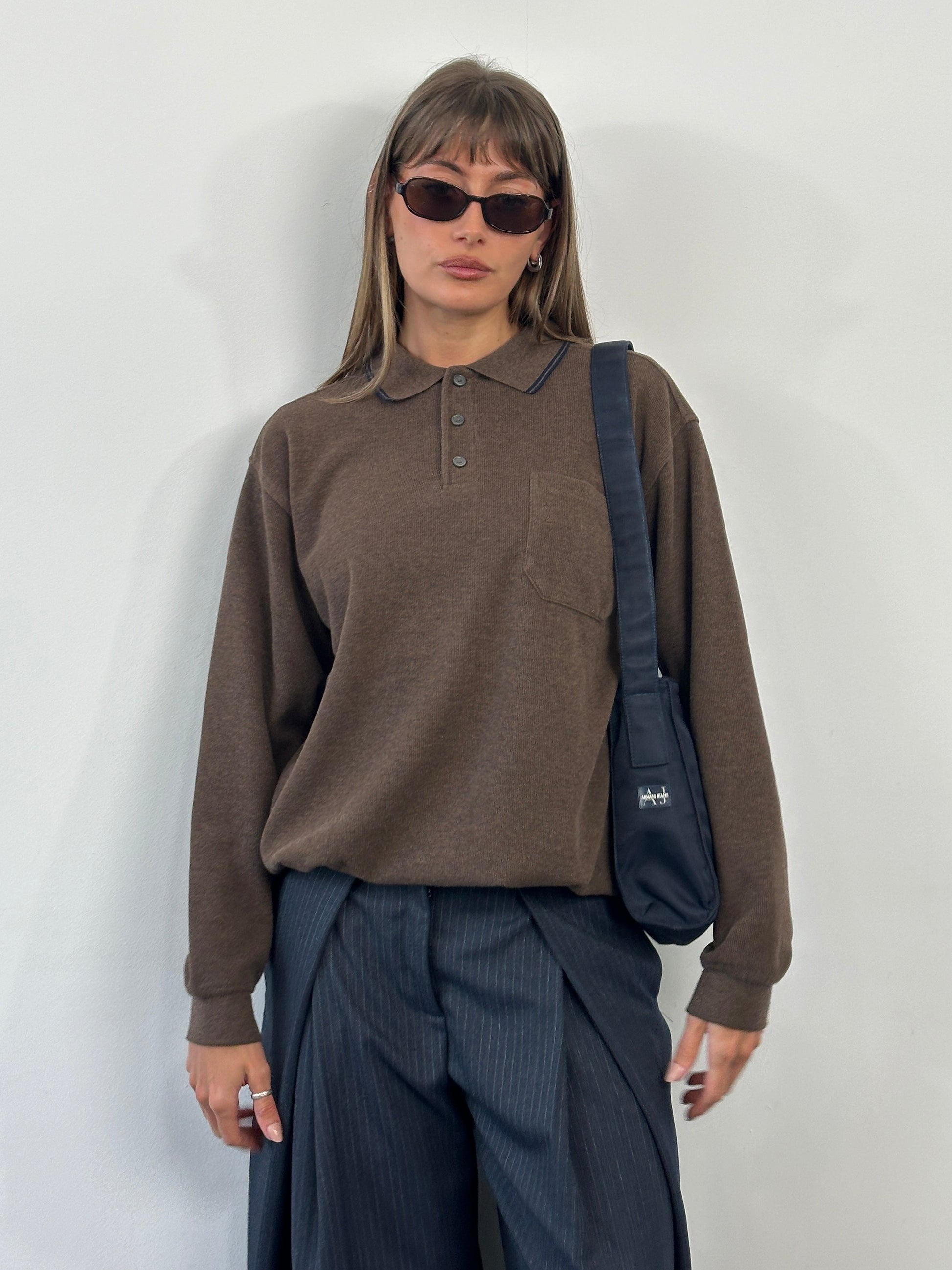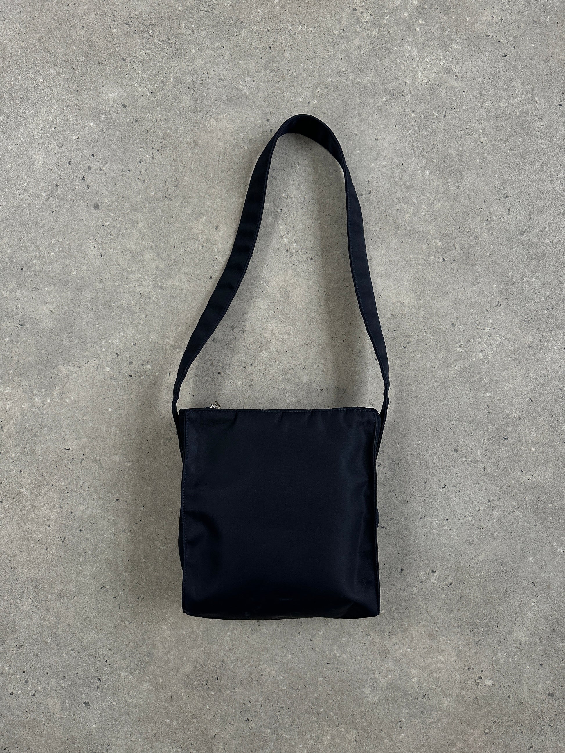 Vintage 2000s navy nylon shoulder bag by Armani Jeans, designed with a compact structured shape and adjustable strap allowing wear on the shoulder or crossbody. Finished with subtle AJ branding and accompanied by the original branded dust bag.