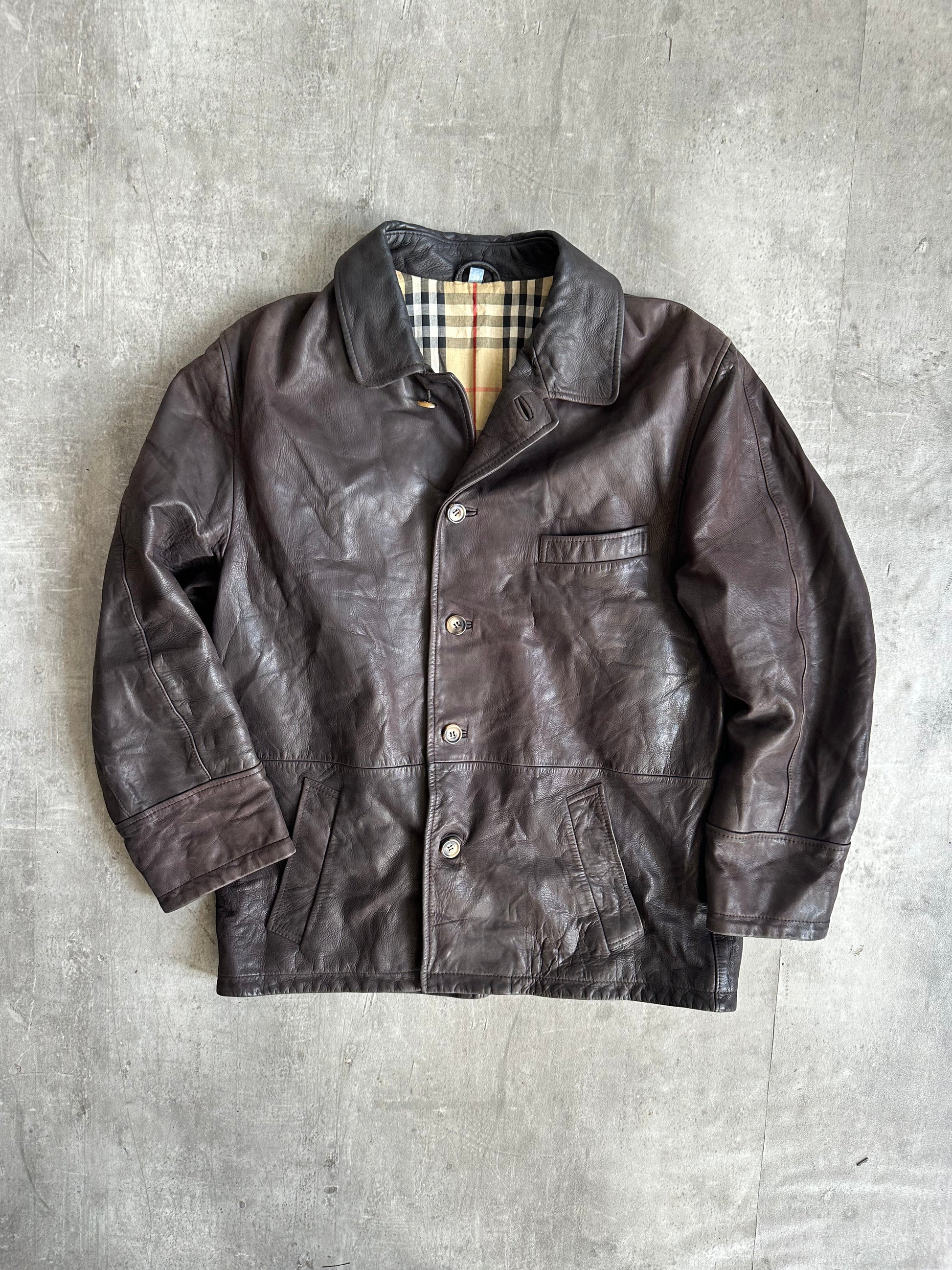 Burberry Brown Soft Leather Nova Lined Chore Jacket