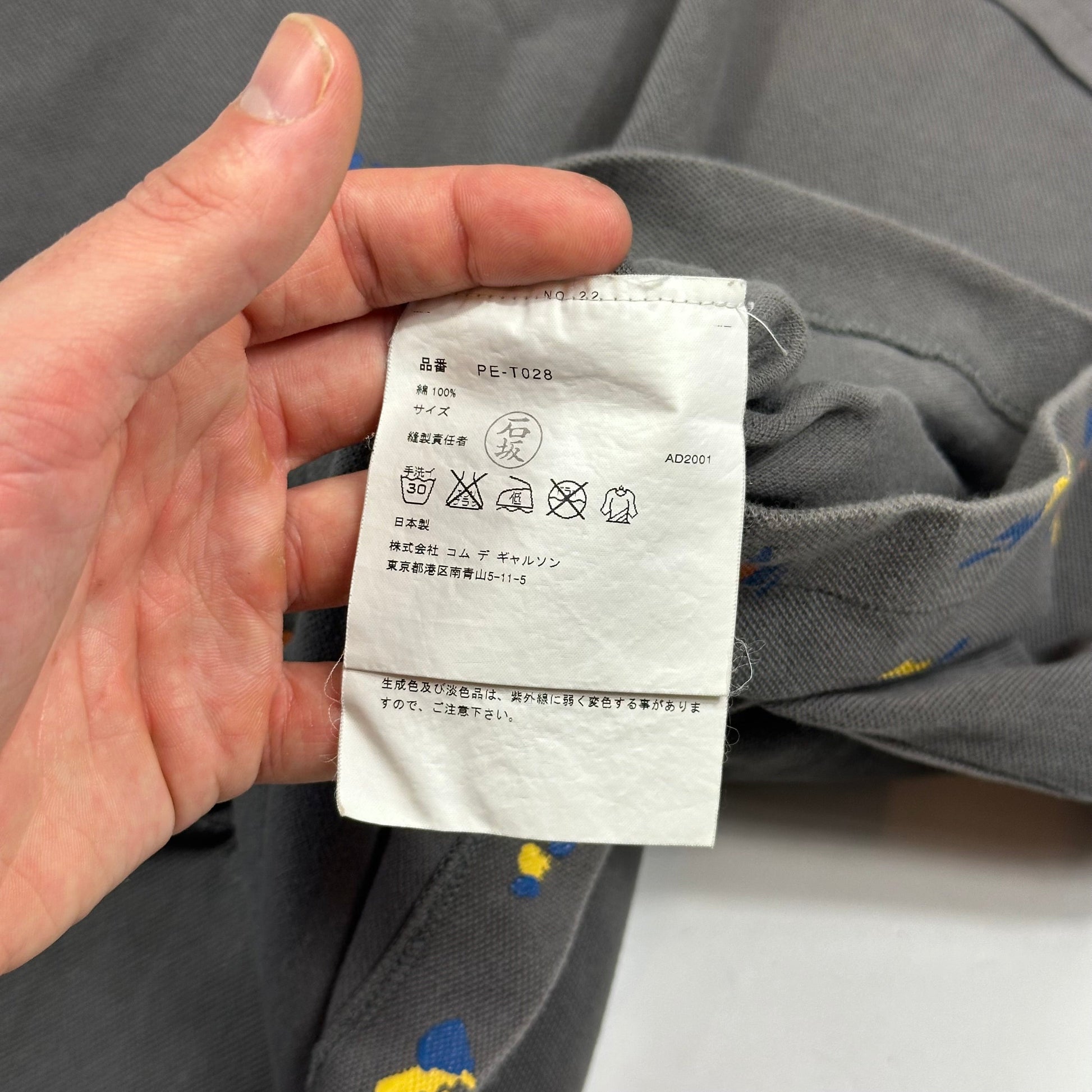 Very rare AD2001 CDG HOMME PLUS grey heavy cotton tee, unique Tetris geometric print to the front, pleated chest panel, boxy fit.