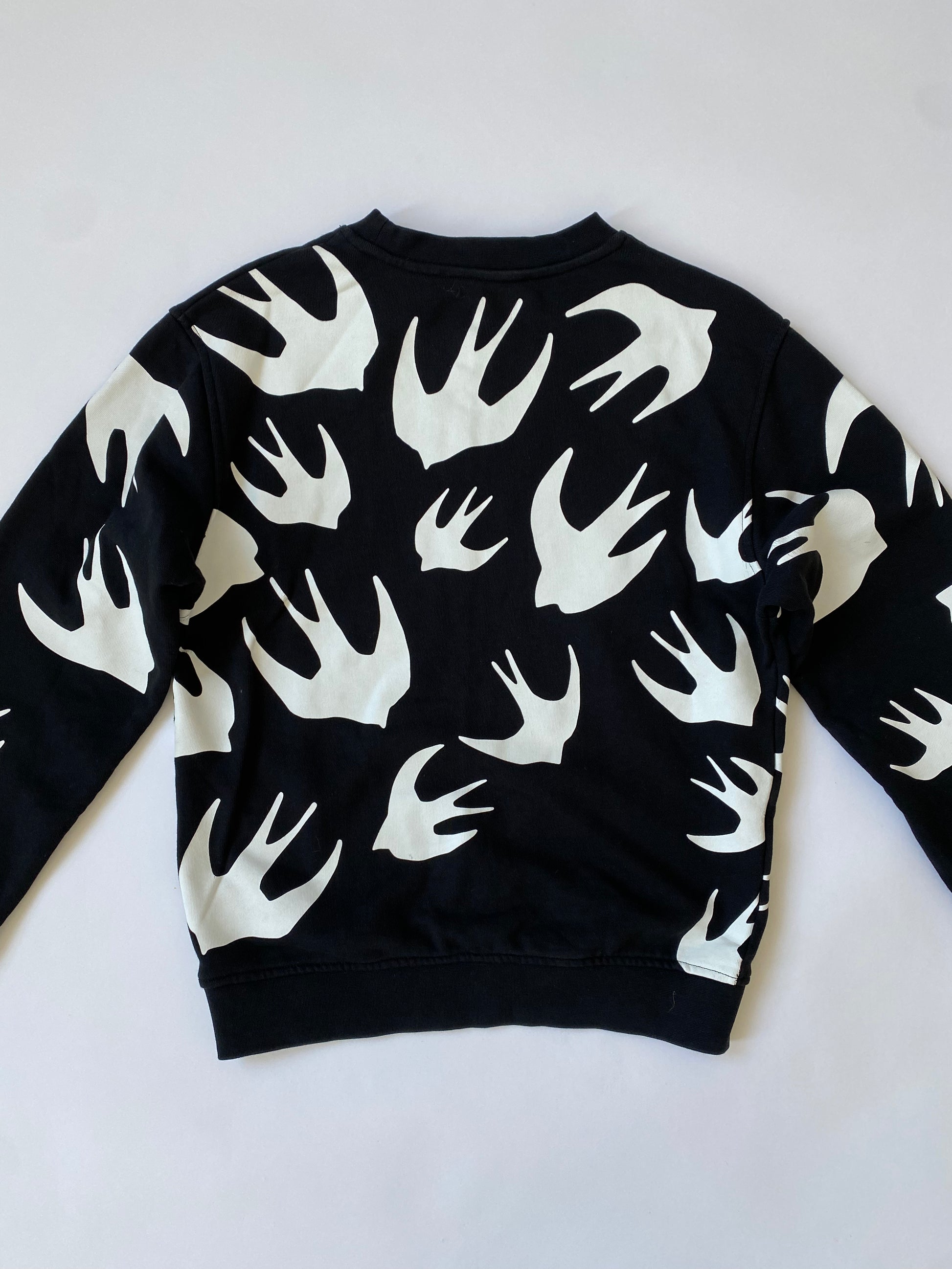 Alexander Mcqueen MCQ Bird Print Sweatshirt. 100% cotton black sweatshirt with swallow birds printed in white.
