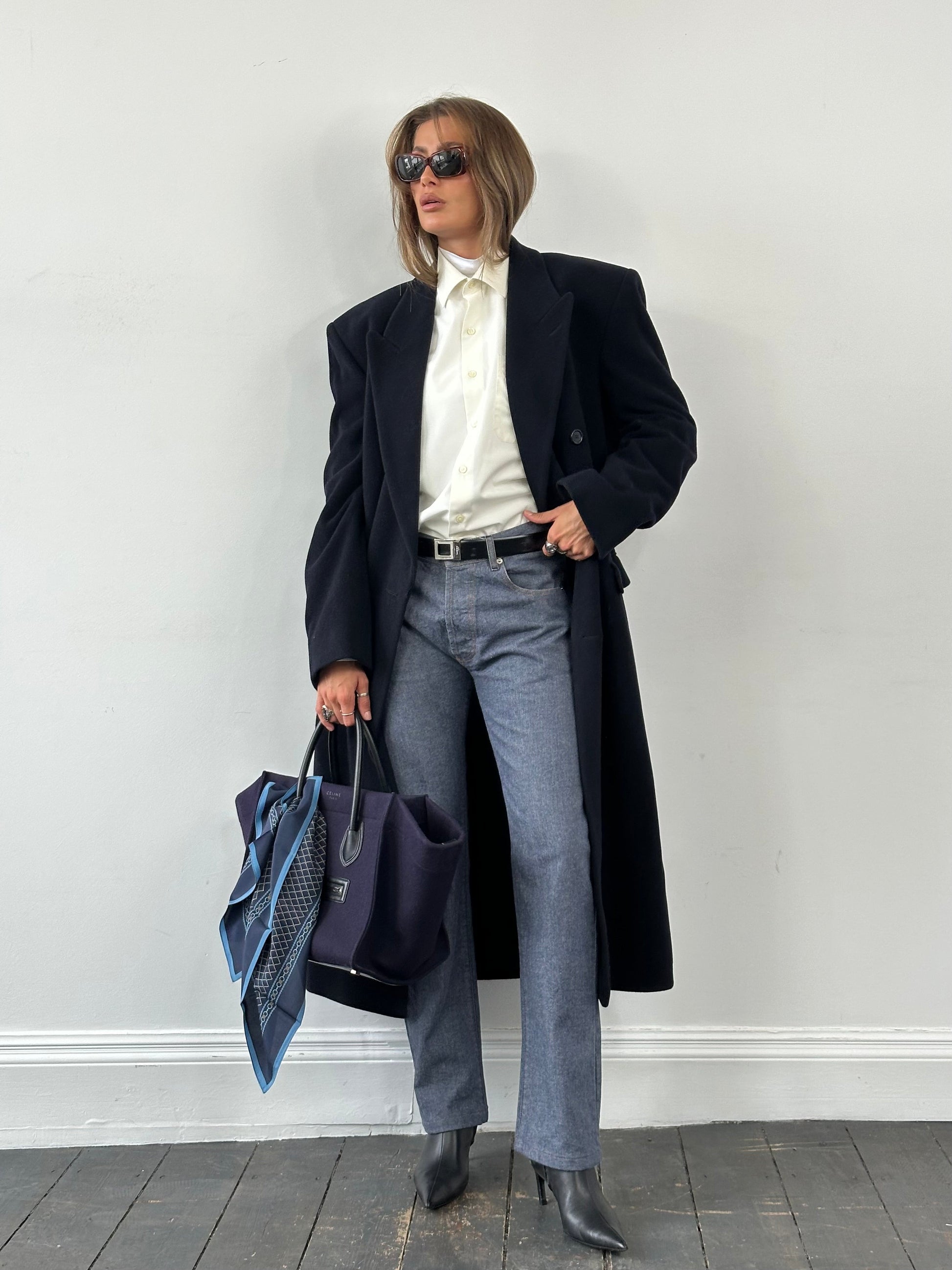 Original Fiorucci Safety Jeans in rigid dark indigo denim, cut with a high waist and straight leg for a clean, elongated silhouette