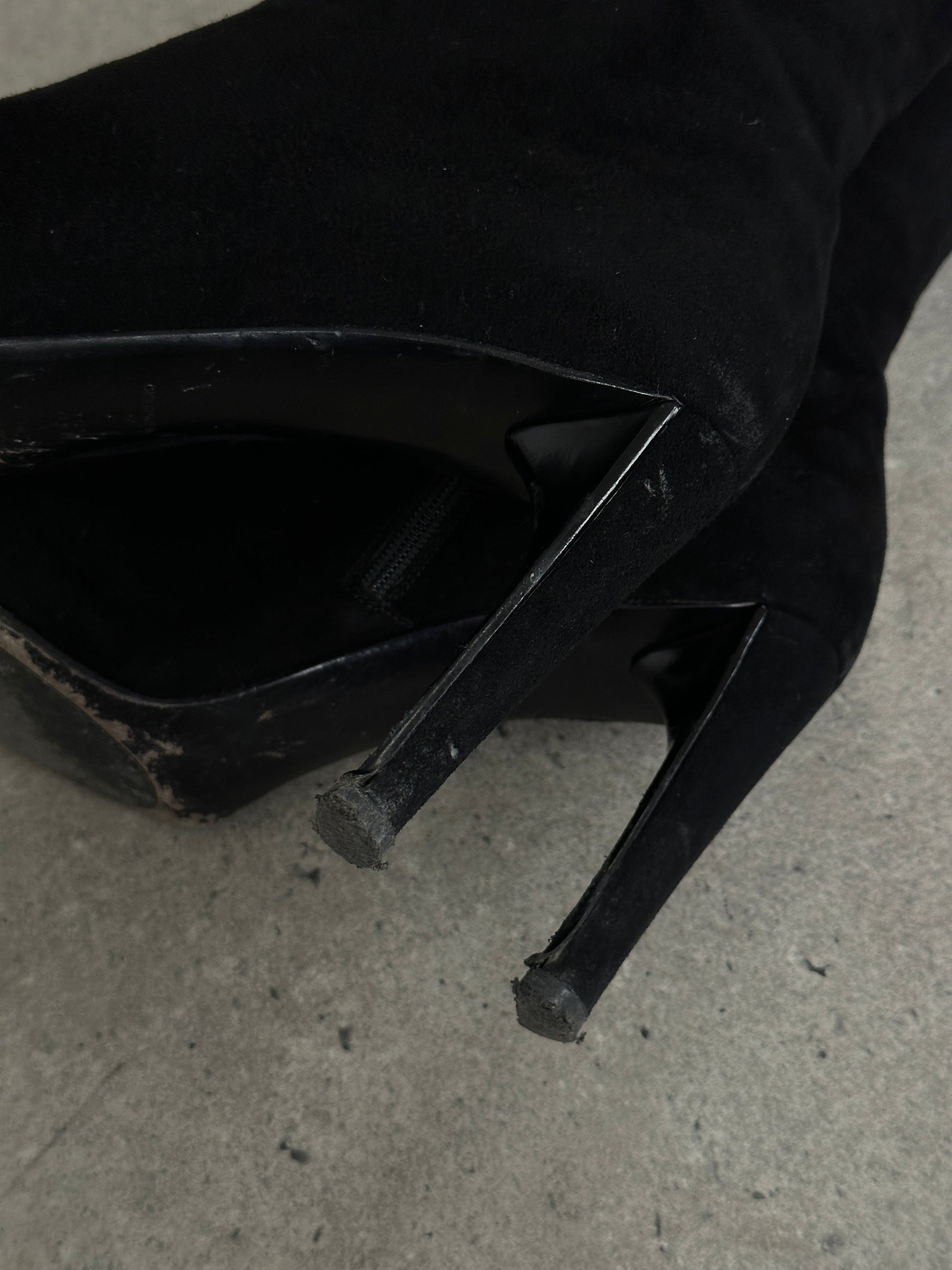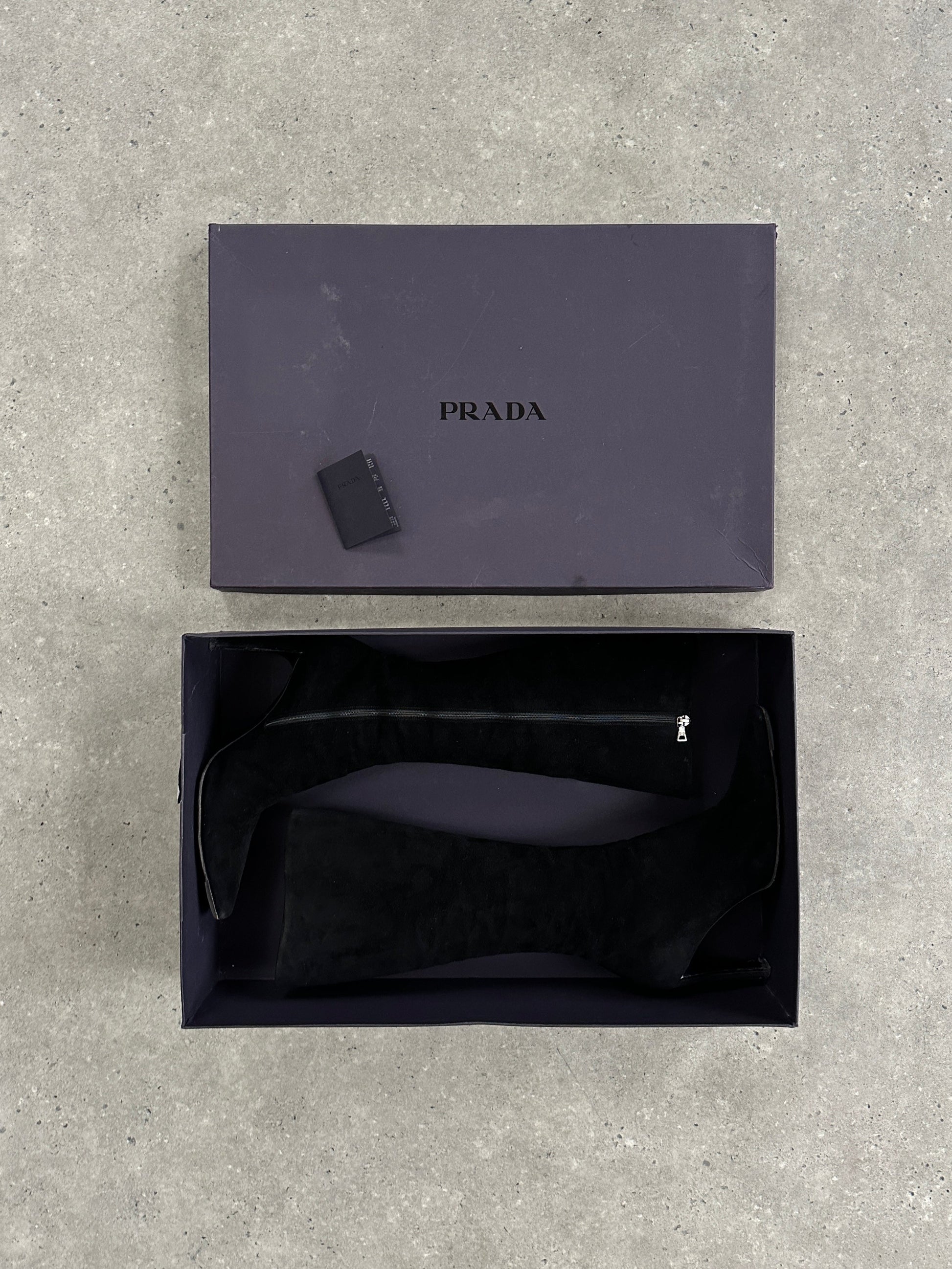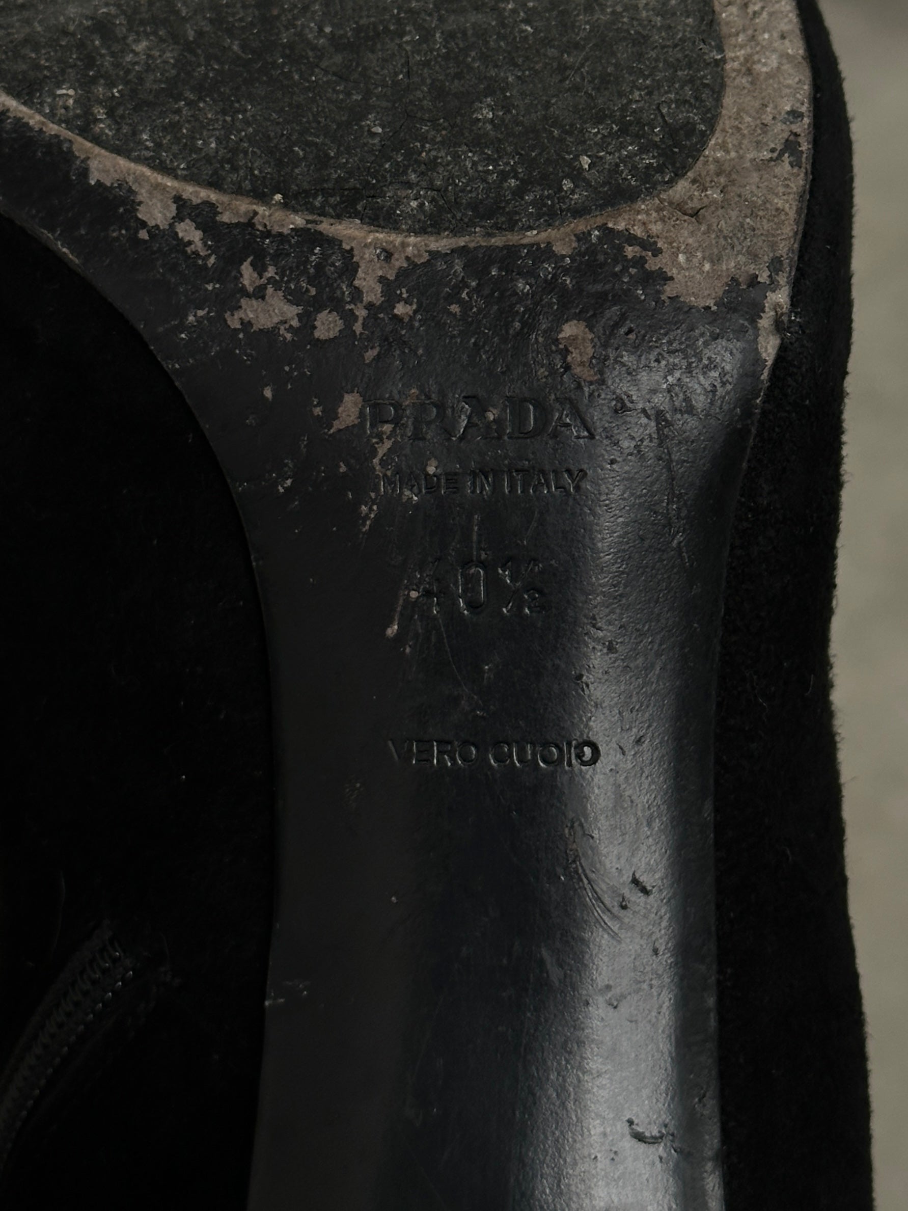 Prada 2000s Suede Square Toe Heeled Knee Boots - UK 7.5 / EU 40.5