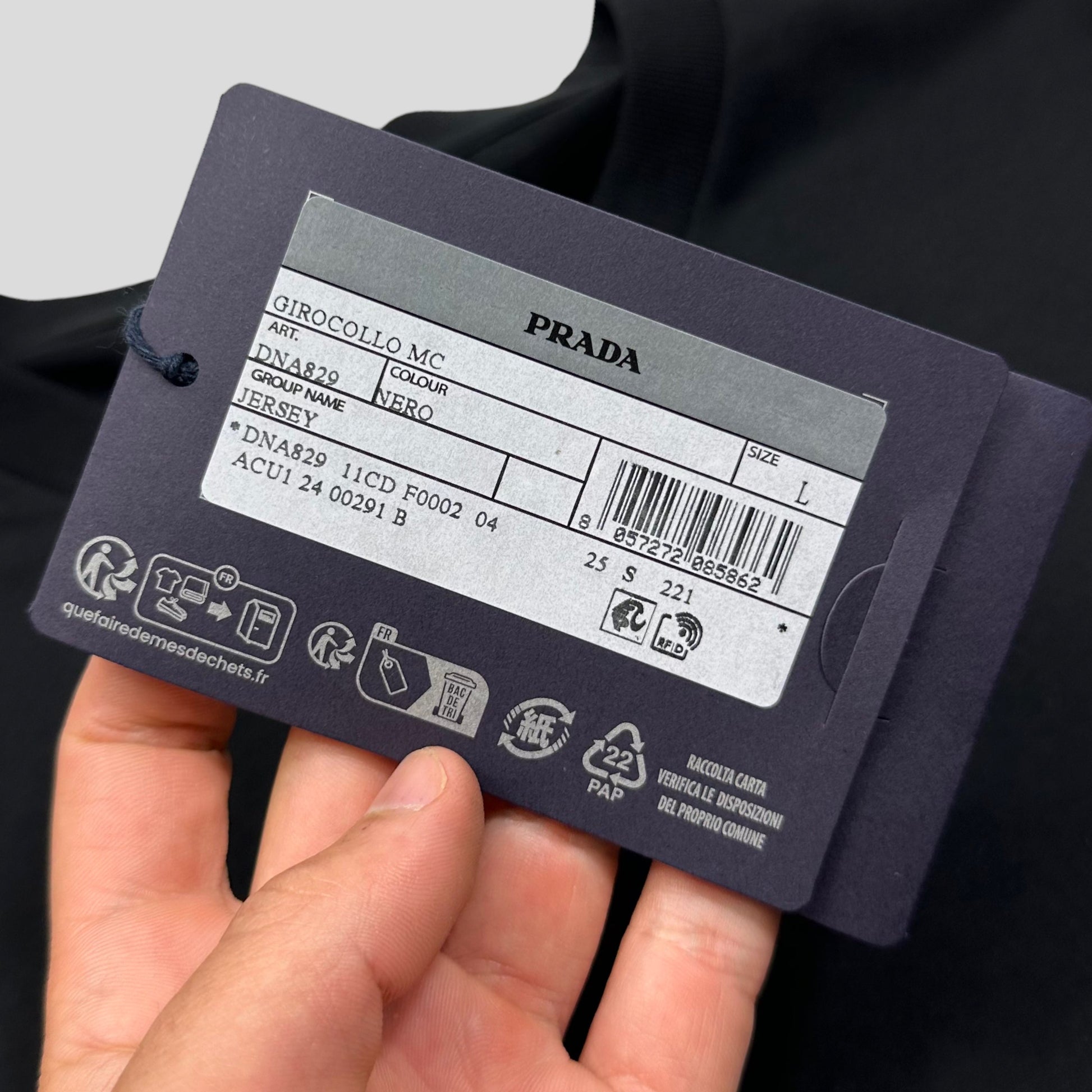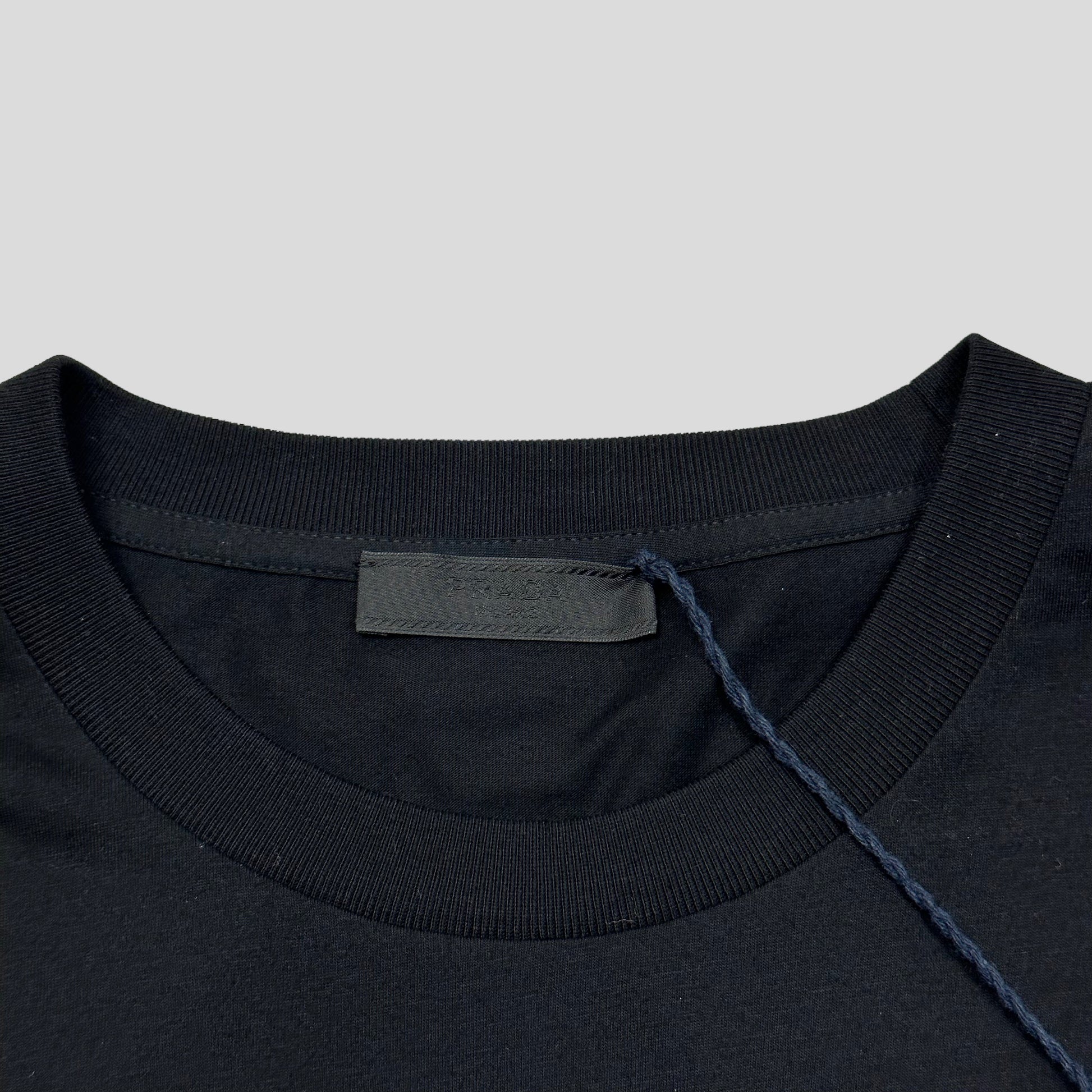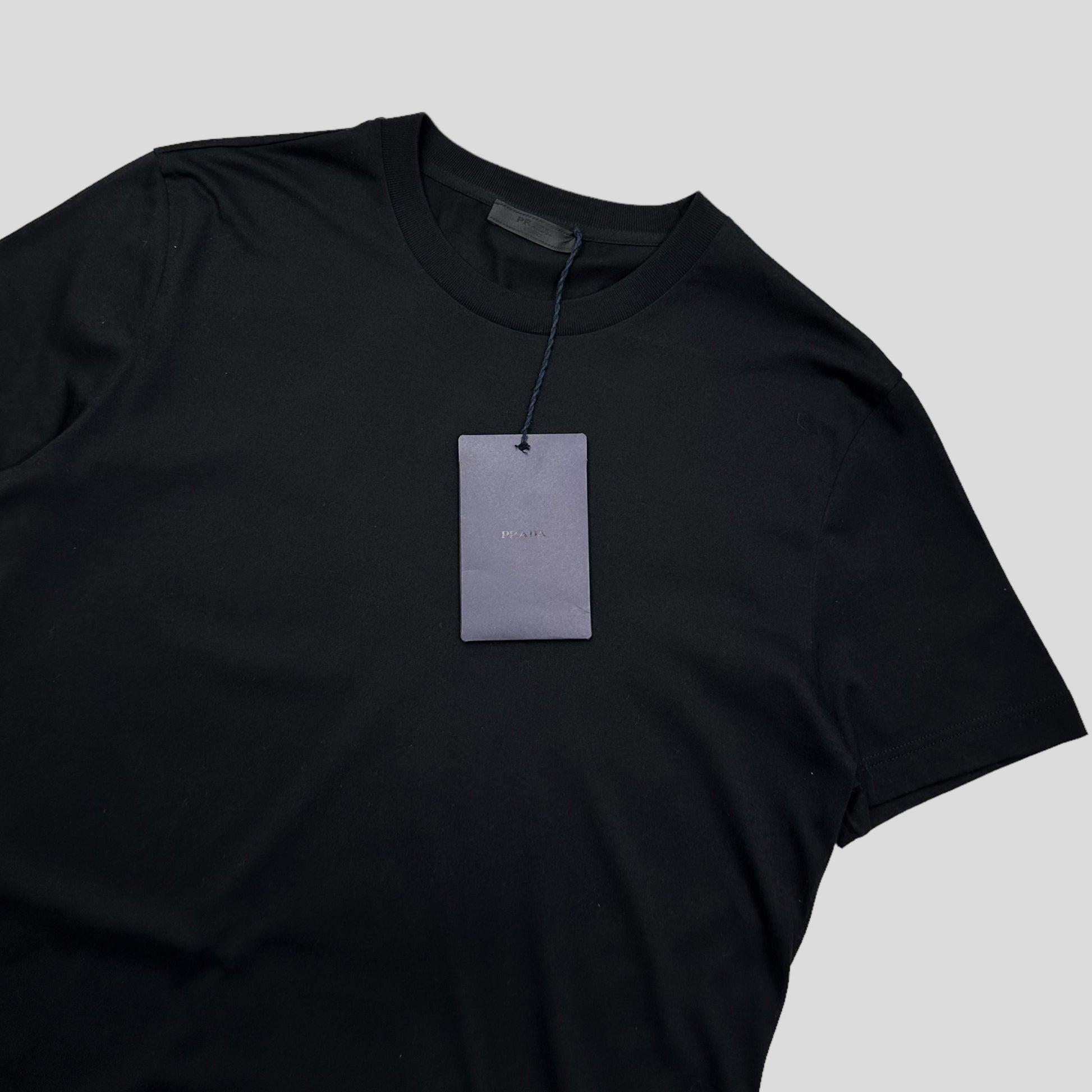 Brand new with tags Prada Milano 2024 black cotton cut & sew jersey t-shirt, completely unworn, nero pitch black with all tags.