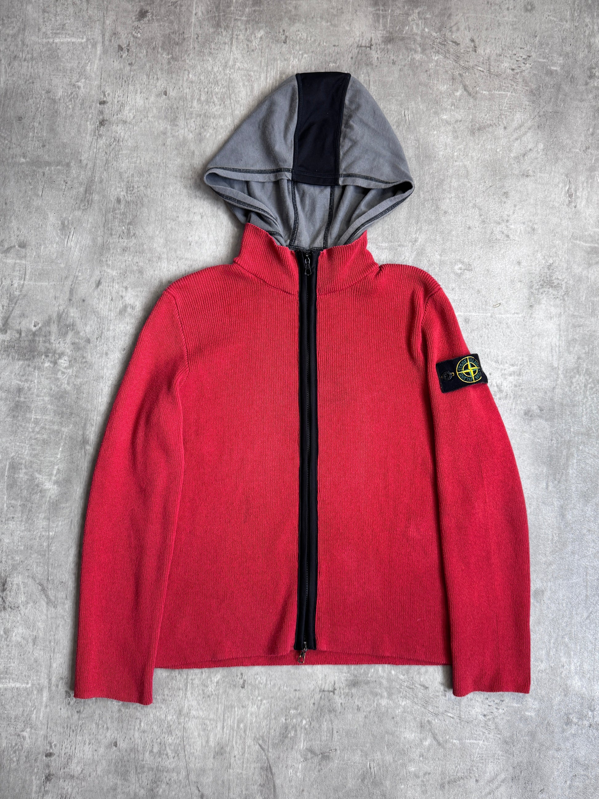 S/S 2004 Stone Island Hooded Red Knit Zip Up