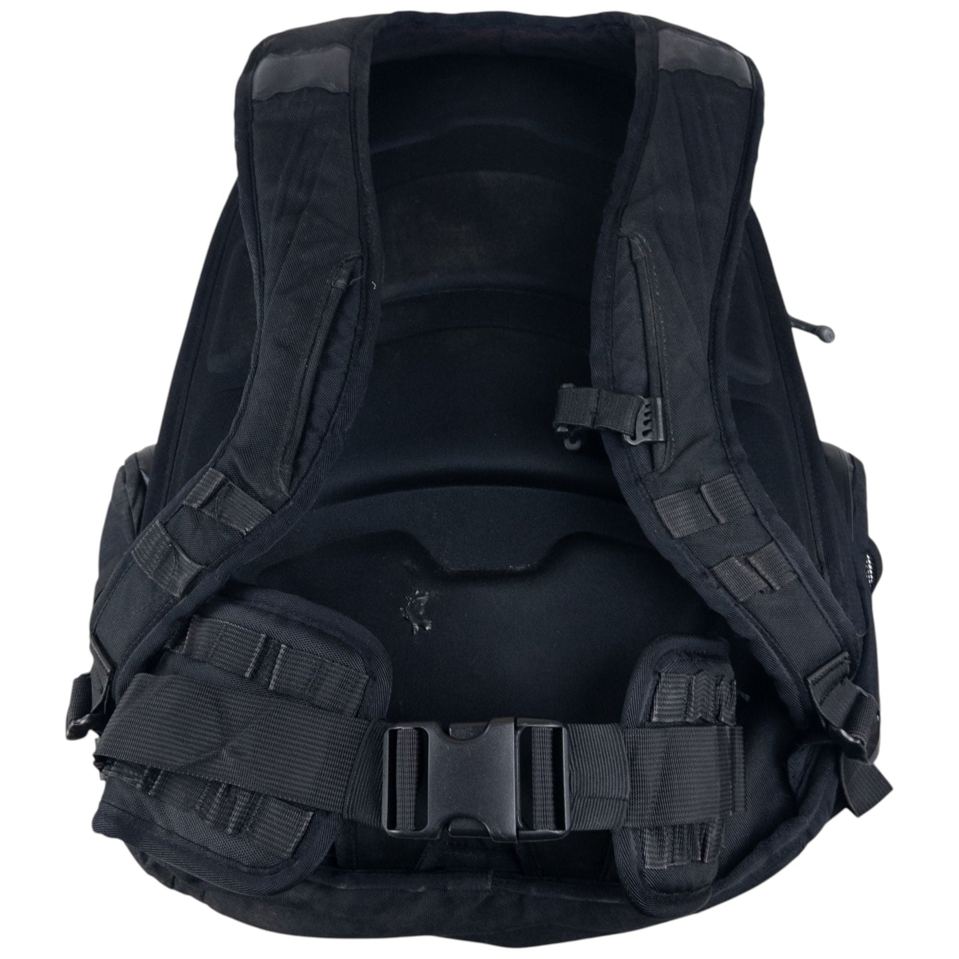 • Other info: Black colour, metal hardware details, hard-shell compartment, cargo pockets, adjustable buckle straps, embossed details, marks and wear as seen