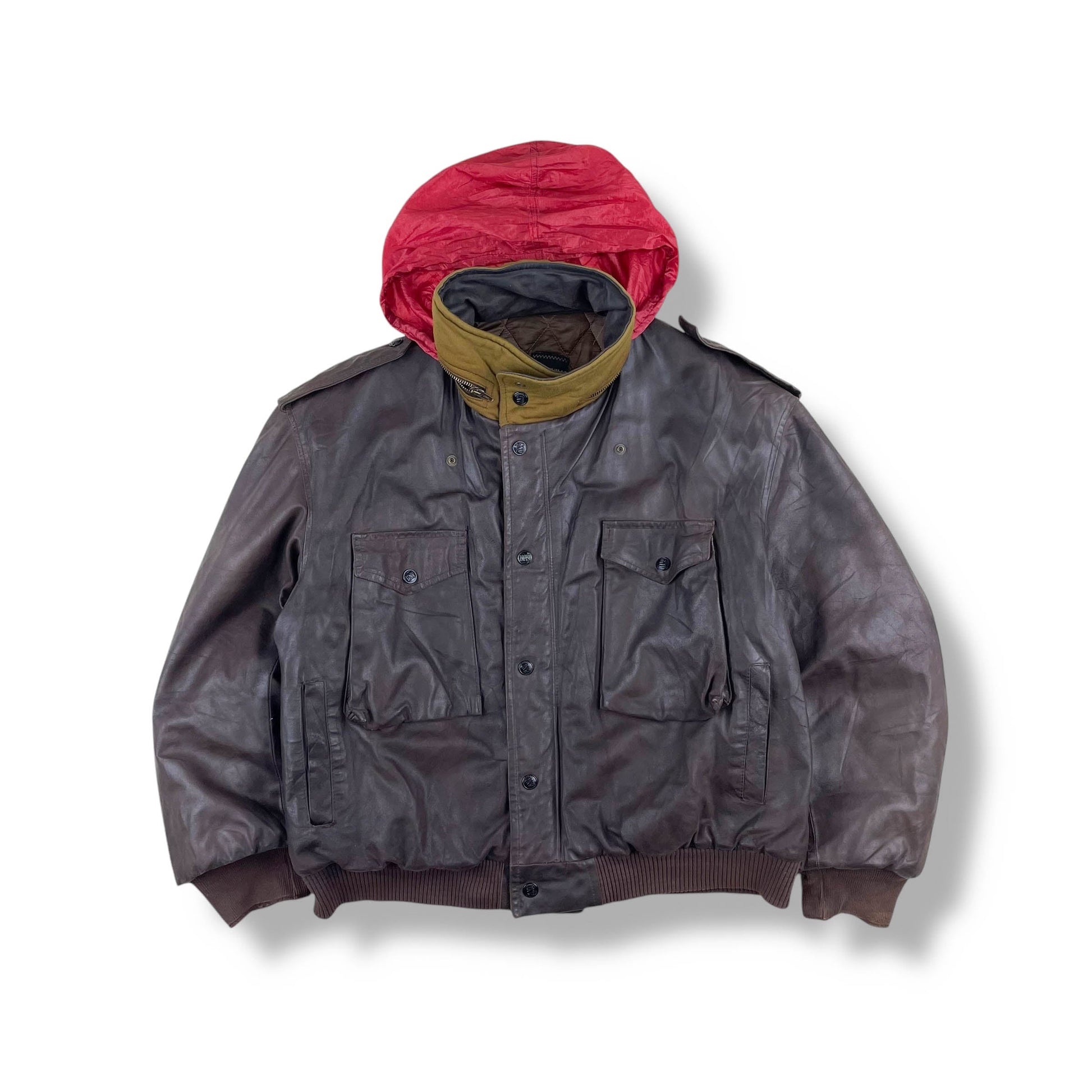 80s Boneville Navy Arctic Leather Jacket with Packable Hood
