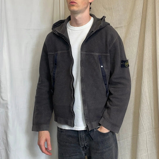 Stone Island Brown AW03 Zip-Through Fleece Hooded Jacket