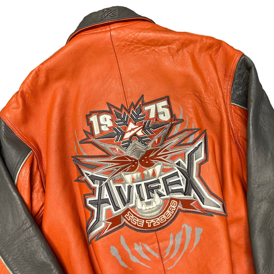 ARCHIVE Avirex Ice Tigers Leather Jacket In Grey & Orange ( L )
