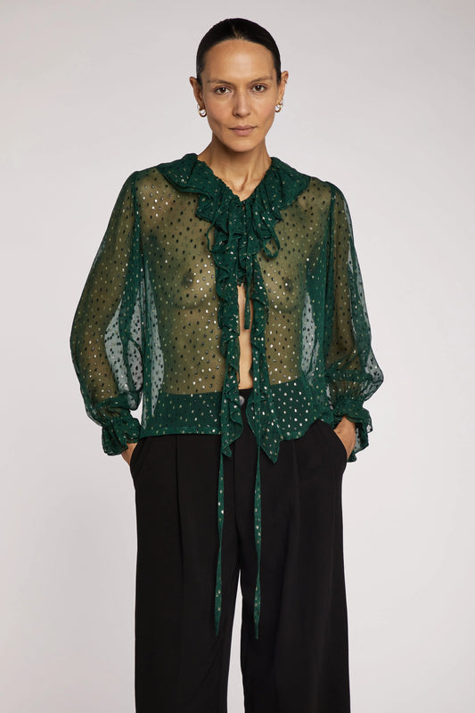 Saint Laurent Rive Gauche Polka Dot Chiffon Blouse 1970s