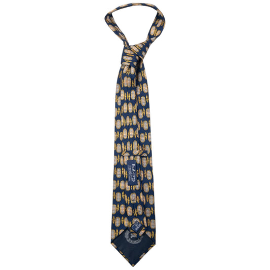 Vintage 80s Burberry Nova Check Cuff Link Print Silk Tie | O/S, Navy