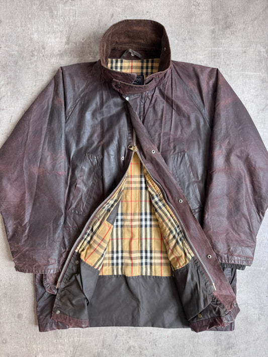 1980's Burberry Nova Check Lined Brown Oilskin Waxed Jacket