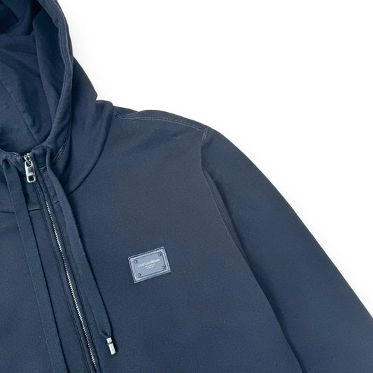 DOLCE & GABBANA PLAQUE LOGO ZIP-UP HOODIE BLACK XL