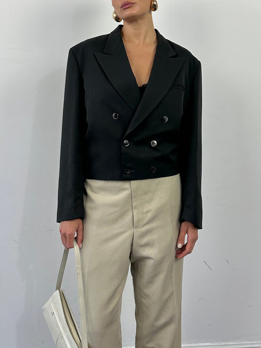 Vintage 1980s Cropped Double Breasted Blazer - M