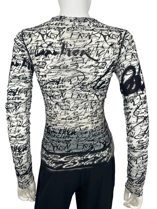 JEAN PAUL GAULTIER SOLEIL BREAK RACISM SCRIPT MESH TOP