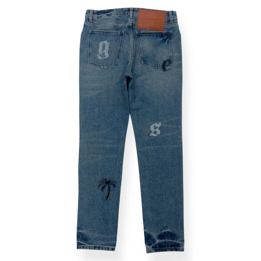 PALM ANGELS LOGO PATCH DENIM JEANS BLUE W33”
