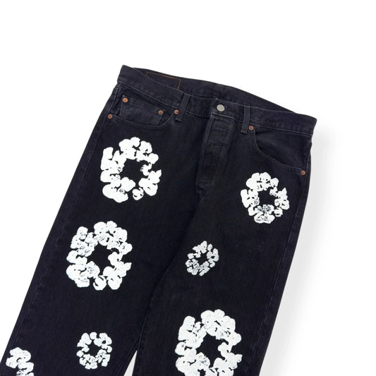 DENIM TEARS X LEVIS COTTON WREATH DENIM JEANS BLACK / WHITE W34”