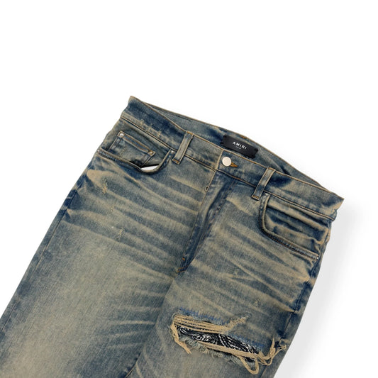 AMIRI BANDANA DISTRESSED SKINNY DENIM JEANS W34”