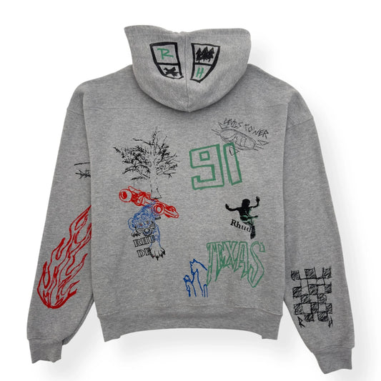 RHUDE DOODLE POPOVER HOODIE GREY L