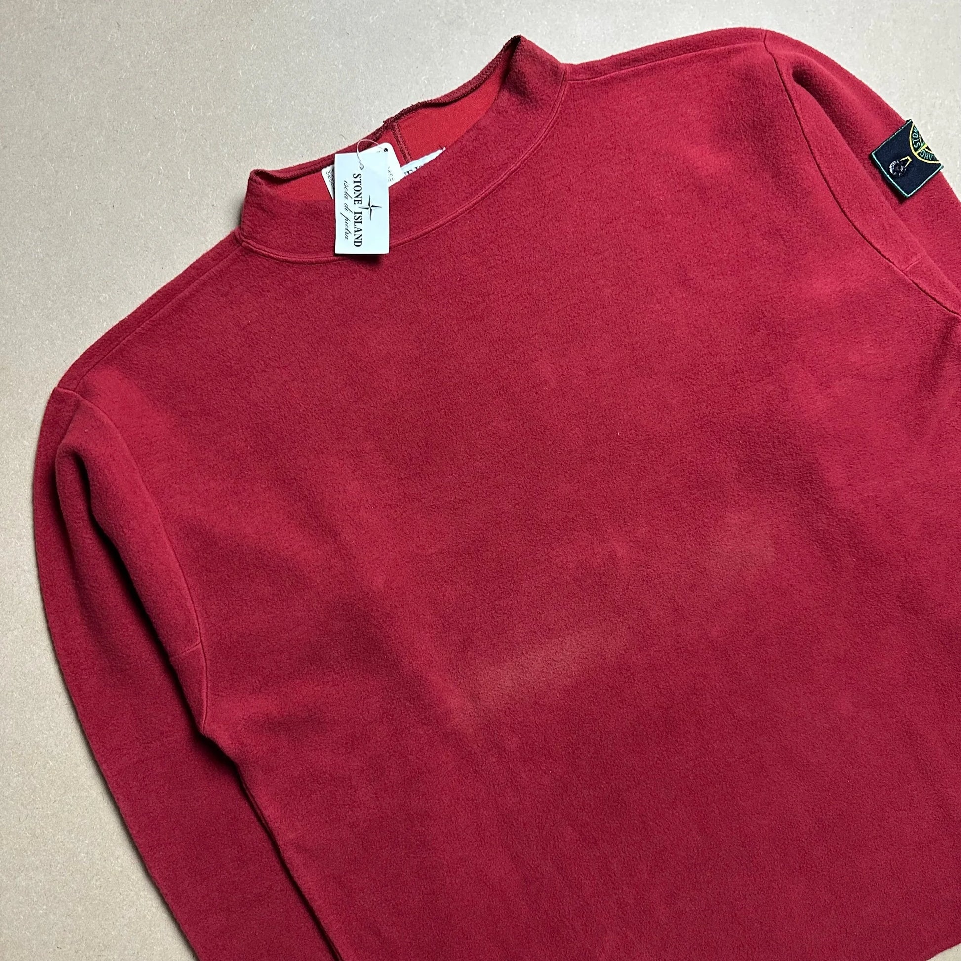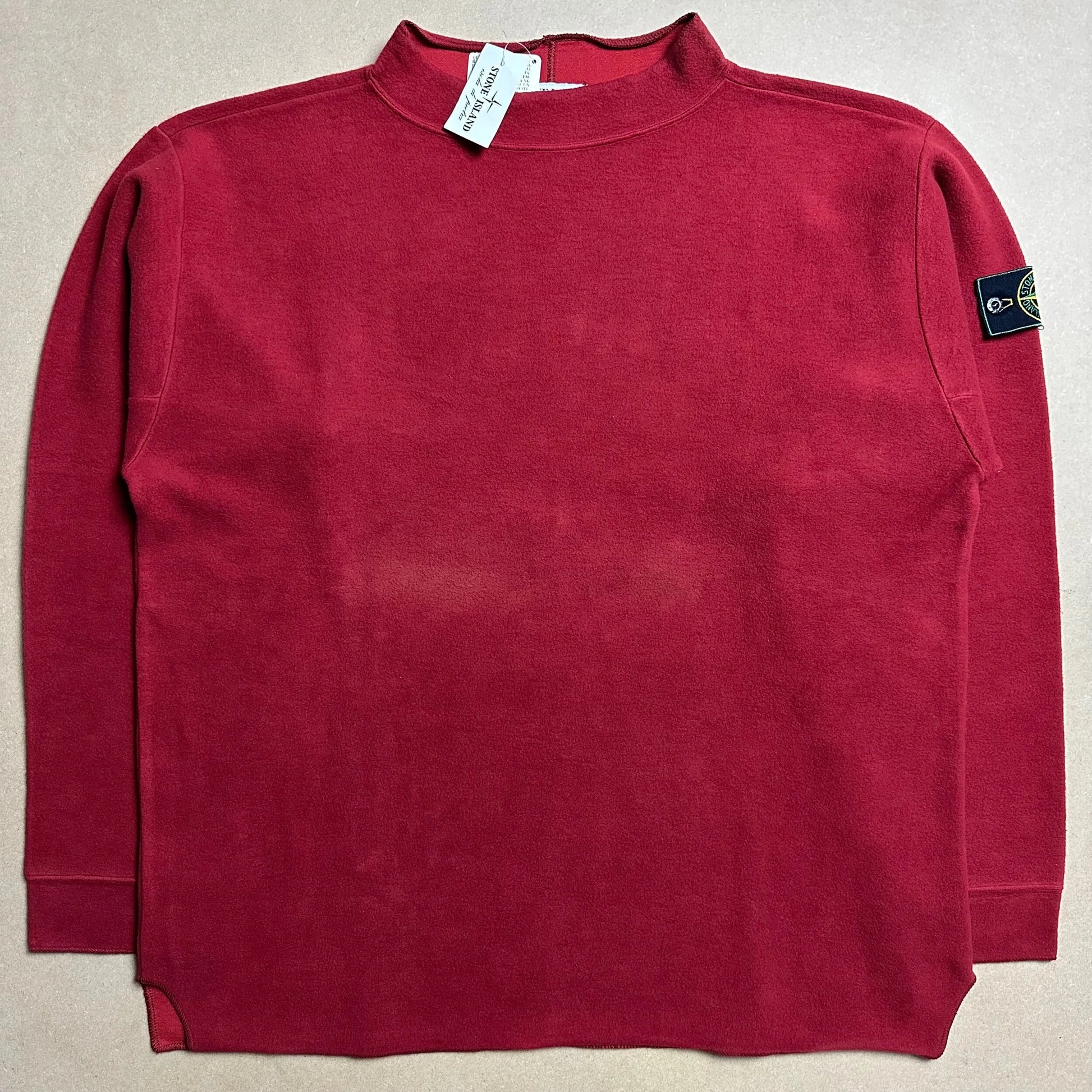 Designed by Massimo Osti. Ultra soft brushed fleece outer layer. Ribbed cotton elastin inner layer. Bonded together to form a neoprene stretch cotton fleece. Constructed in a mock neck style with a split hem and tapered stitch cuffs.