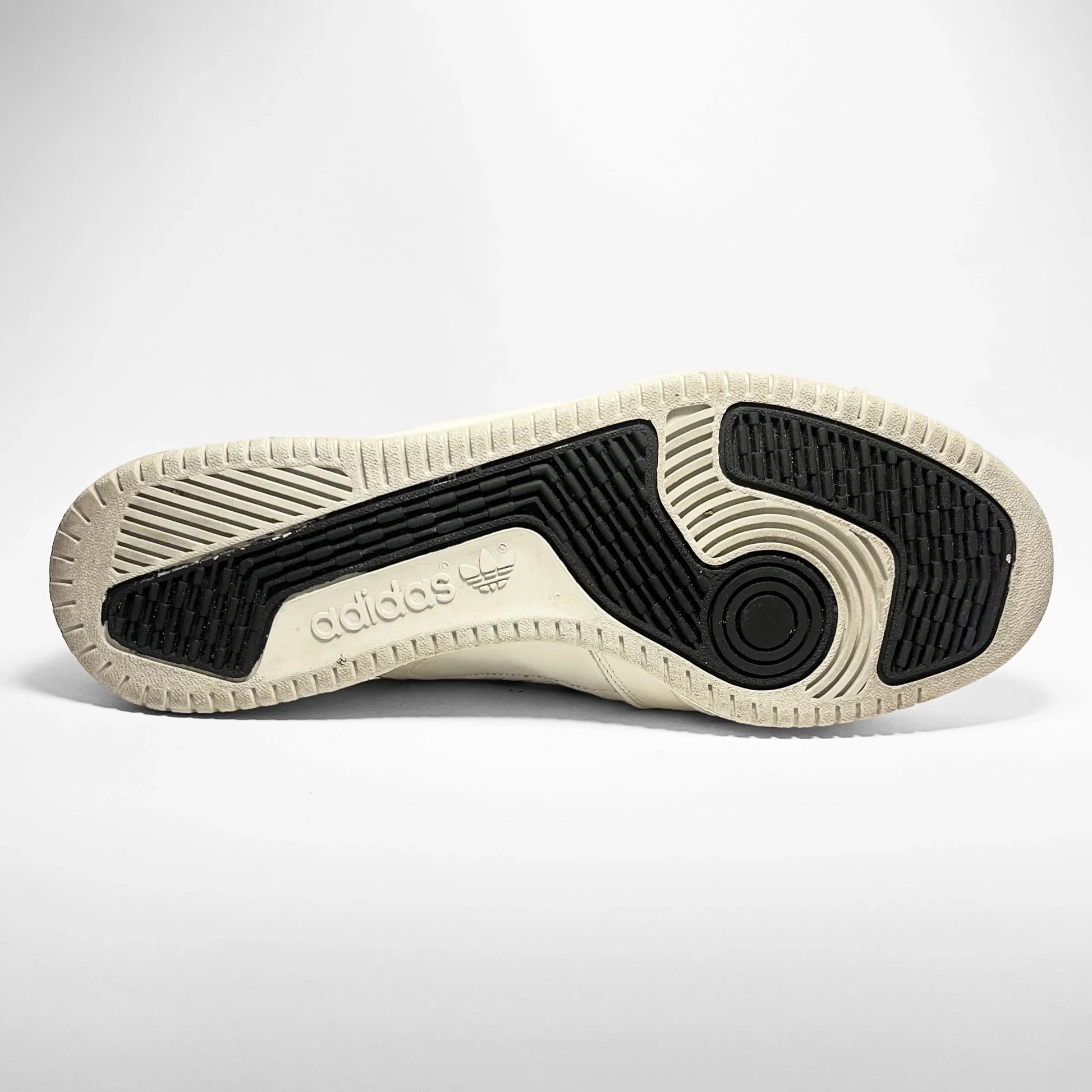 White leather upper panels combined with embossed detail rubber overlay three striped branding and silver print matching the branded script beneath in a separate part as well as the detailed touch on forefoot, branded tag on tongue, single silver eyelet panels, heel panel and outsole.