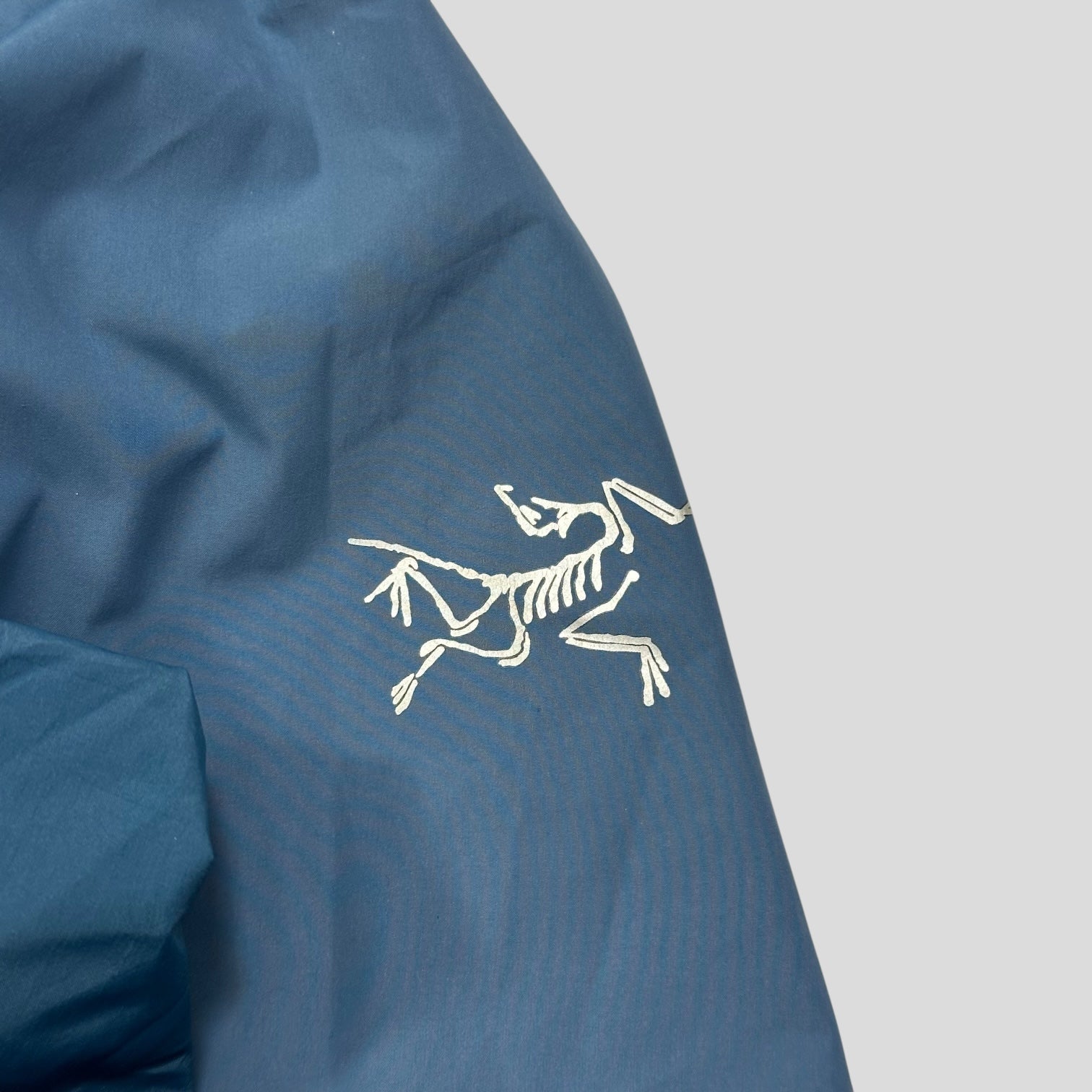 Arc’teryx 2017 Wateproof and windproof Solano blue jacket, reflective 3m deadbird logo to arm, cinchable hem and elastic cuffs, Gore winstopper shell with lightweight fleece lining, really comfortable hoodie style jacket, not stiff and uncomfortable like the heavy duty performance shells.