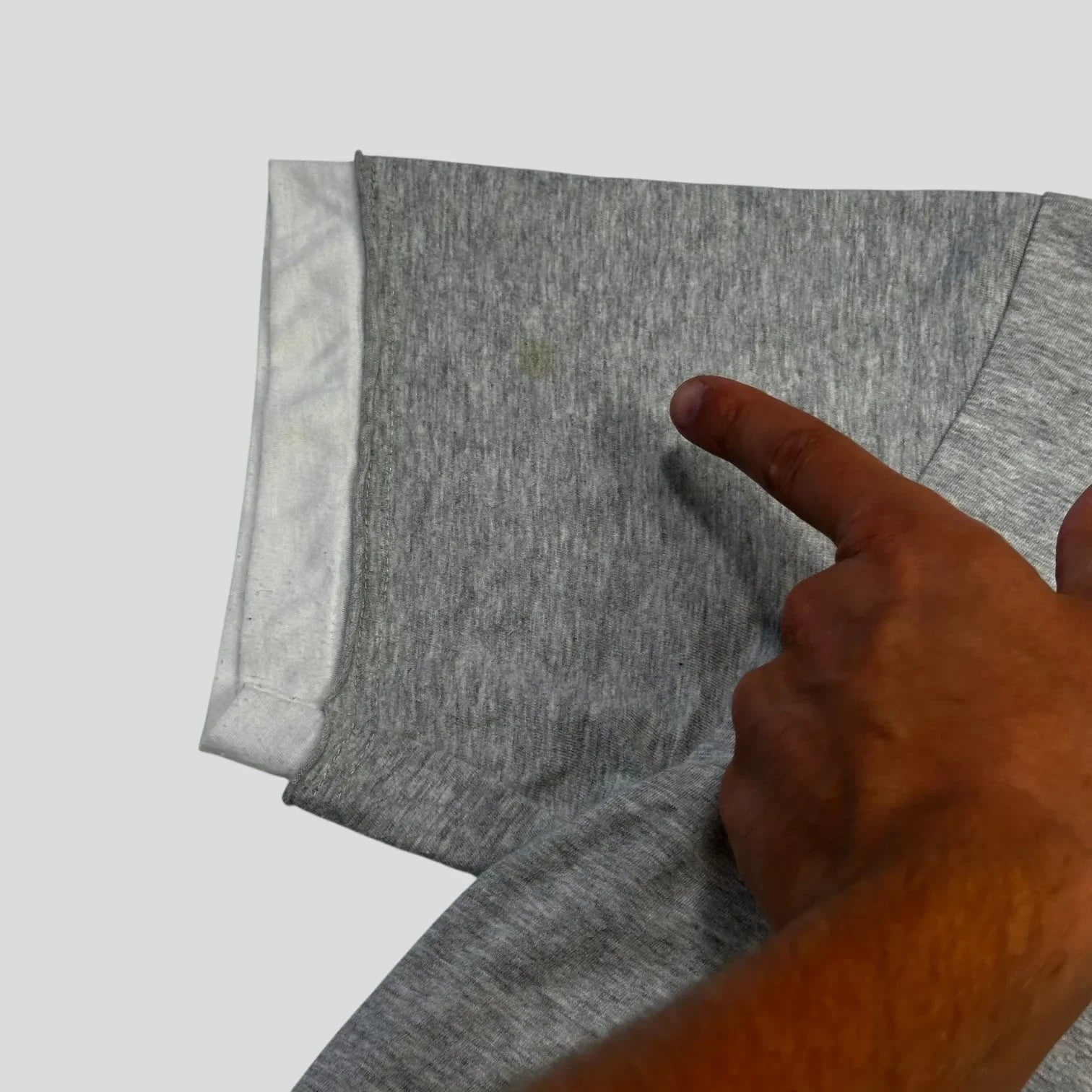 Comme Des Garçons Homme Plus grey cotton tee with unique inside layering technique, essentially two t-shirts in one, perfect layering game, 100% cotton outer 65-35% poly cotton inner for comfort.
