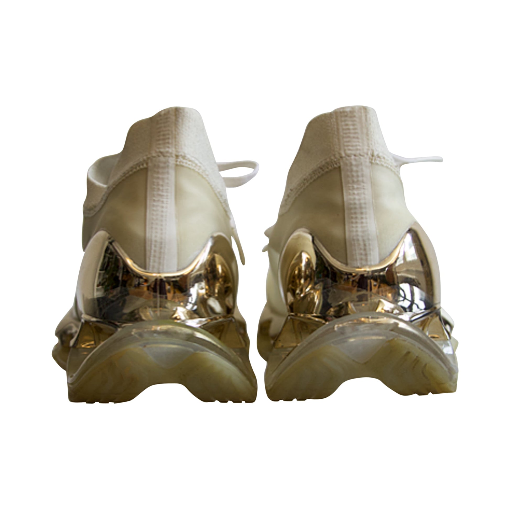 A futuristic fusion of art, innovation, and performance — the Hajime Sorayama x Mizuno Wave Prophecy Trainers bring together the visionary aesthetic of acclaimed Japanese artist Hajime Sorayama with Mizuno’s cutting-edge sports technology. Featuring a striking metallic silver finish inspired by Sorayama’s iconic “sexy robot” artwork, these trainers reimagine the boundaries between fashion and function. The sculptural Wave Prophecy sole unit delivers dynamic cushioning and stability, while the sleek, high-gloss upper embodies Sorayama’s trademark hyperrealist style. A rare and highly collectible release, this collaboration celebrates the intersection of art, design, and performance innovation.