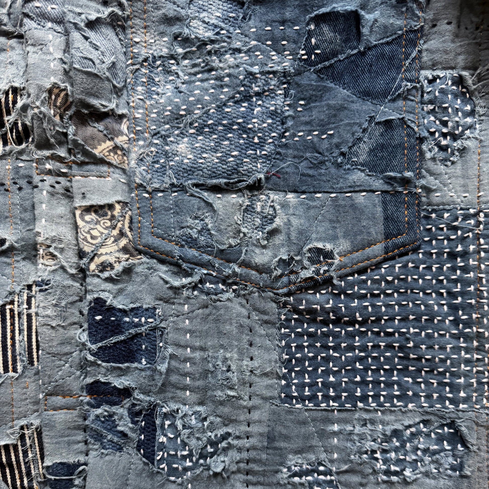 • Boro denim repair and hand made distressing