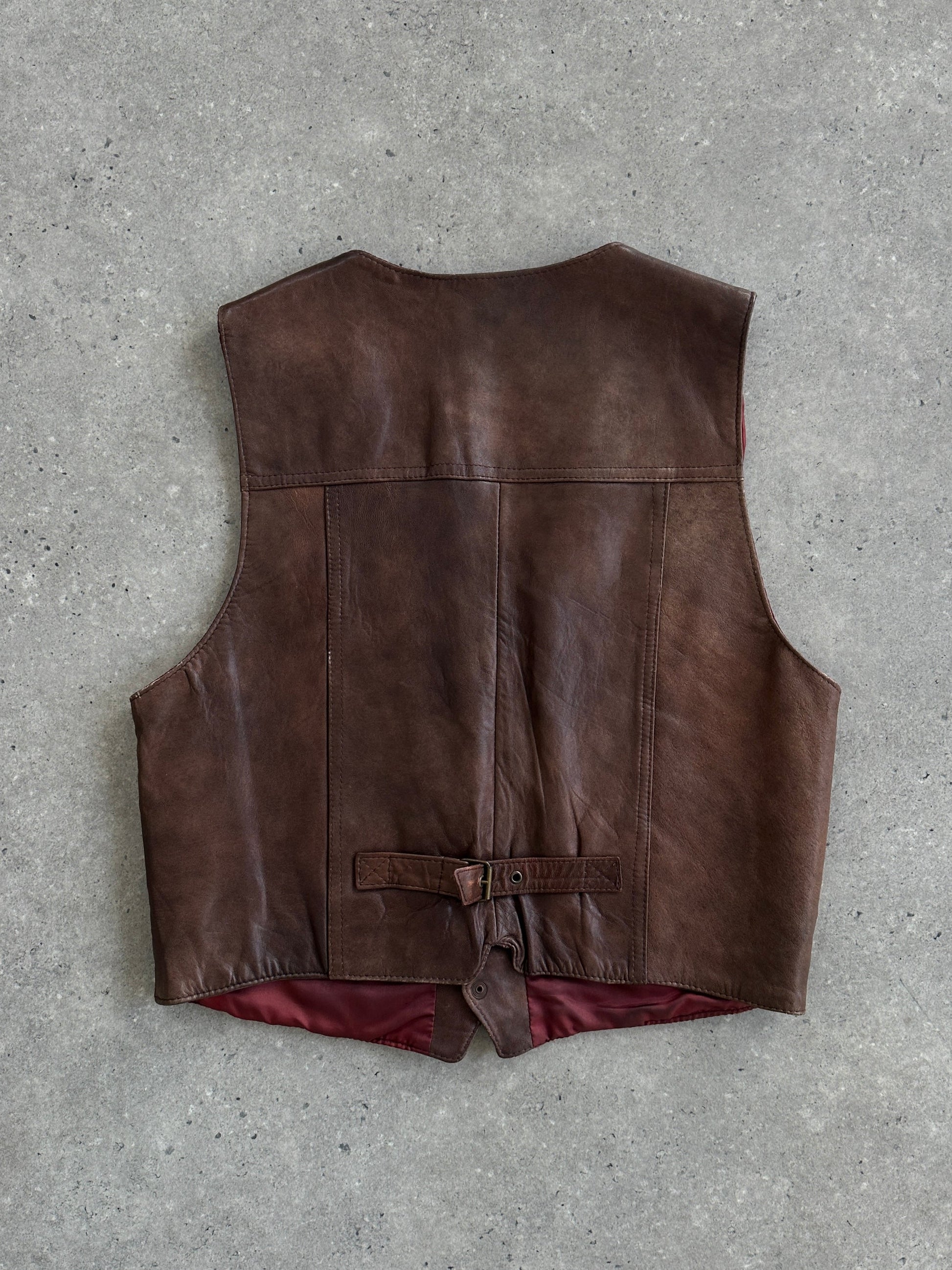 Italian Vintage Aged Leather Waistcoat - L