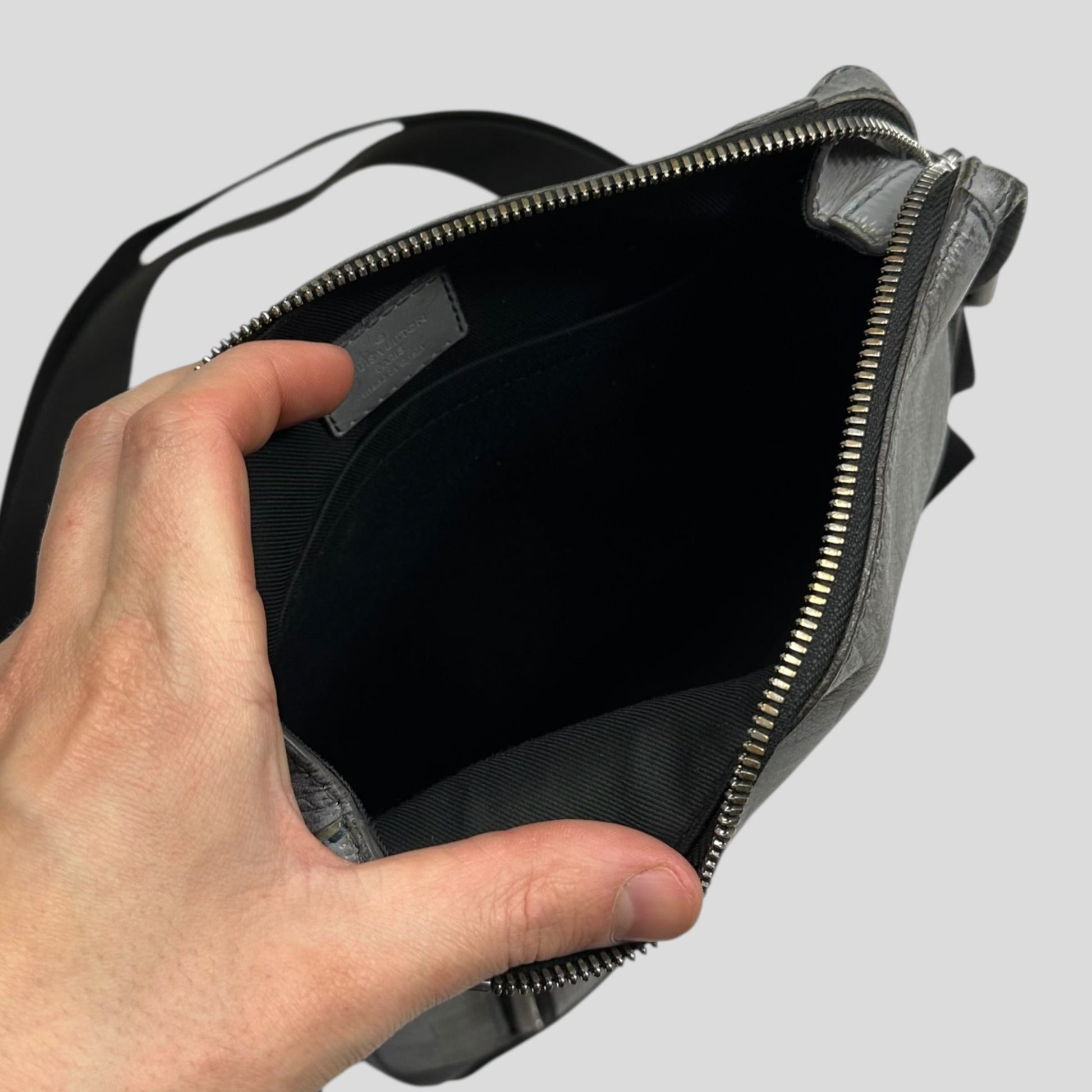 Very rare authentic Louis Vuitton LV Infini Grey Leather crossbody messenger bag, damiere monogram print, incredible quality, spacious luxury bag, made in Spain,