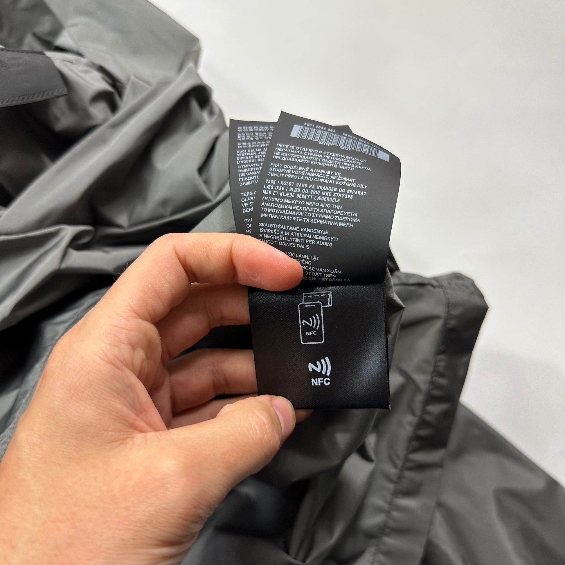 Jacket is completely brand new with original tags, eBay authentication tags and scans as authentic using NFT tag the jacket is missing the drawstring at the bottom, you could easily thread a new one into the holes.