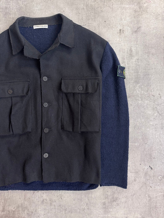 Stone Island AW04 Denims Spellout Logo Black Track Jacket - L