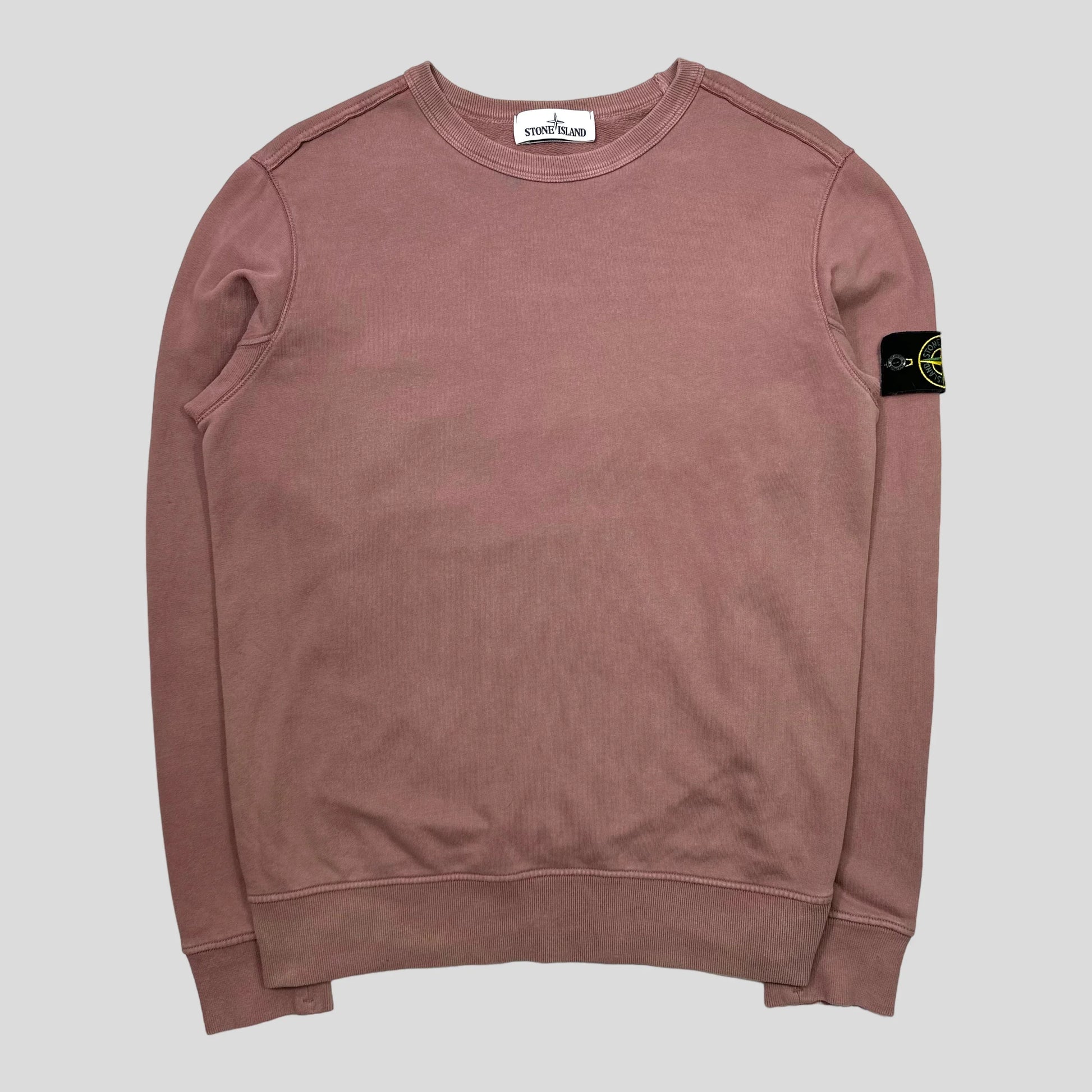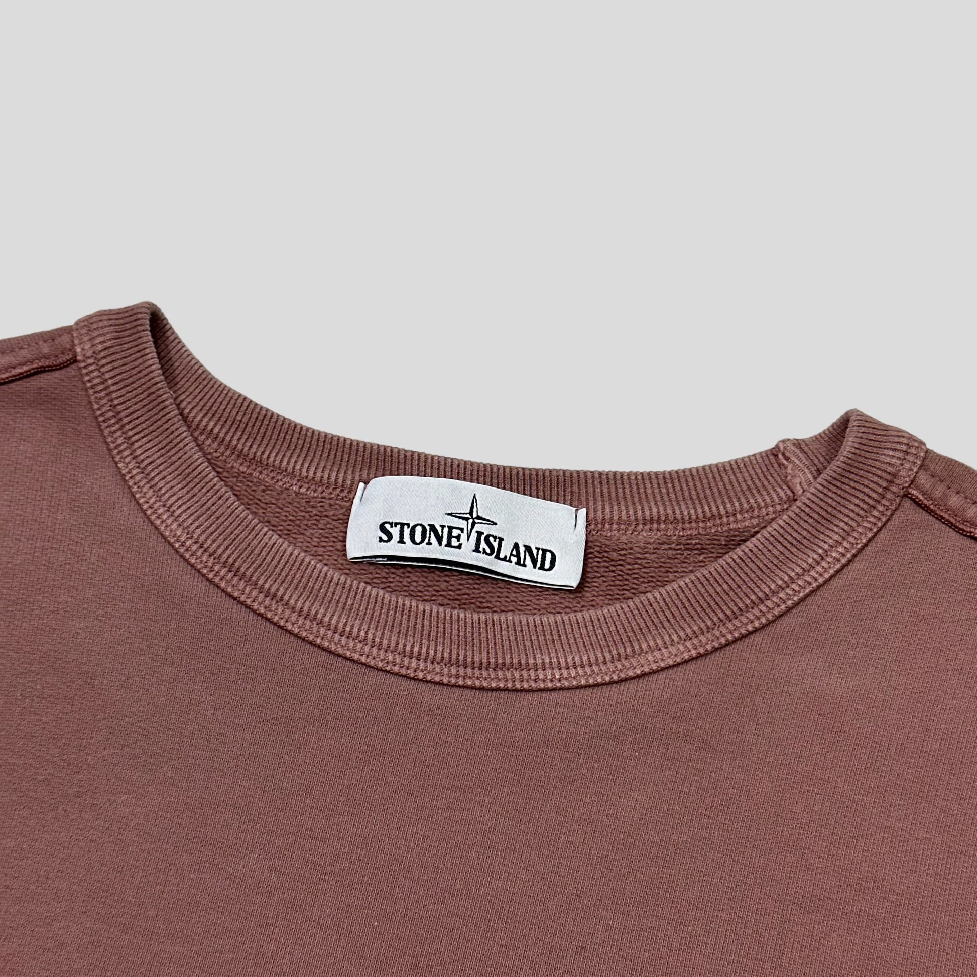 Stone Island dusty pink, cotton sweatshirt with badge to arm.