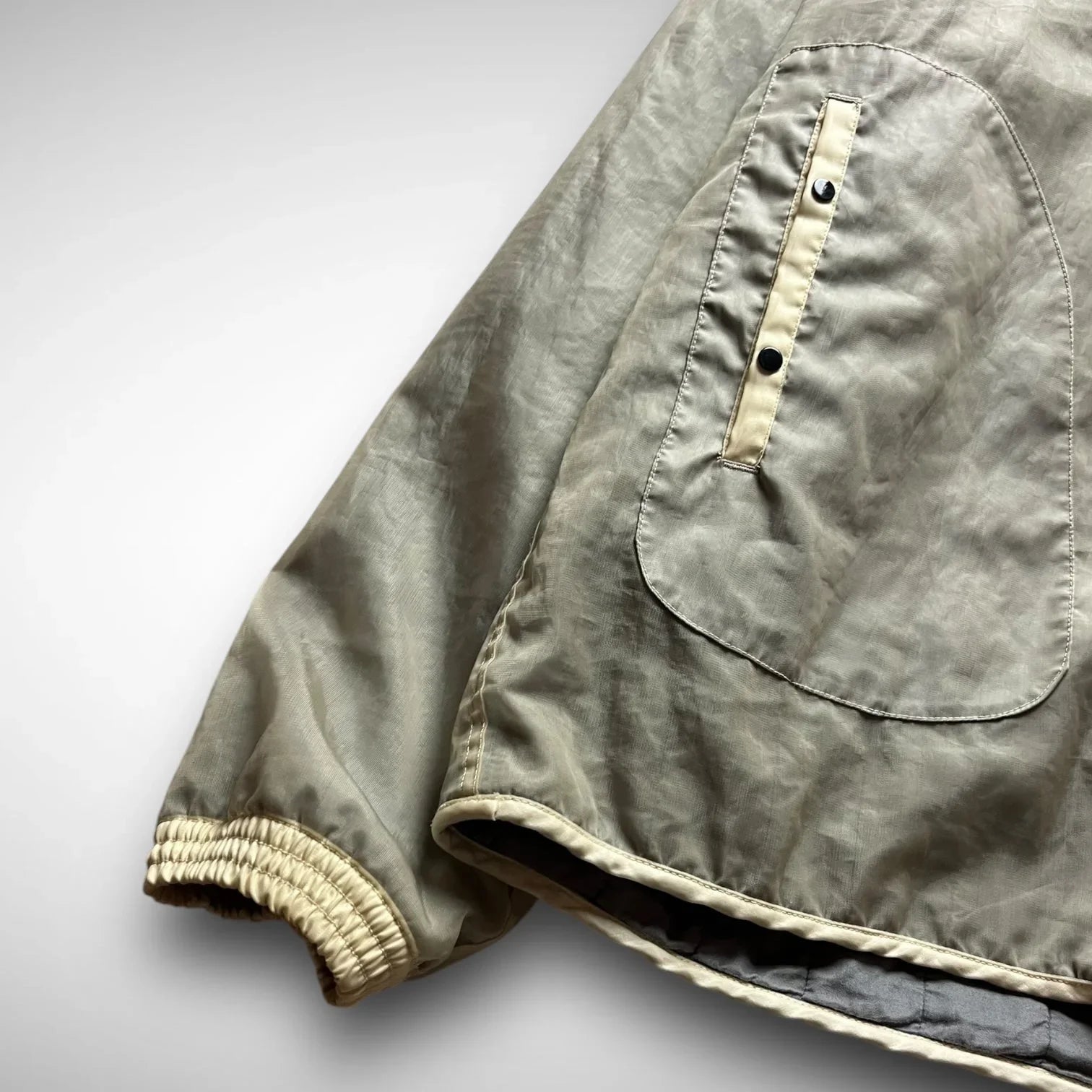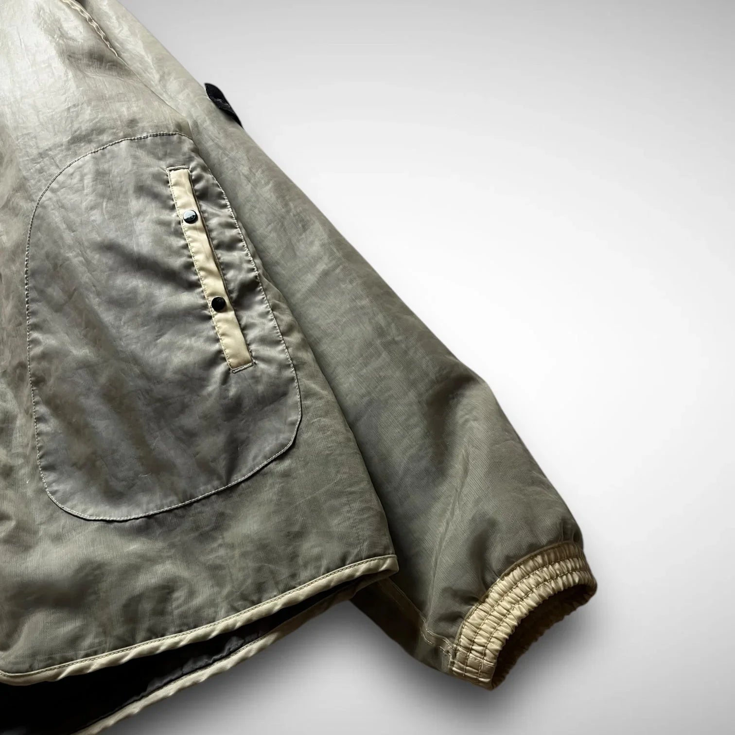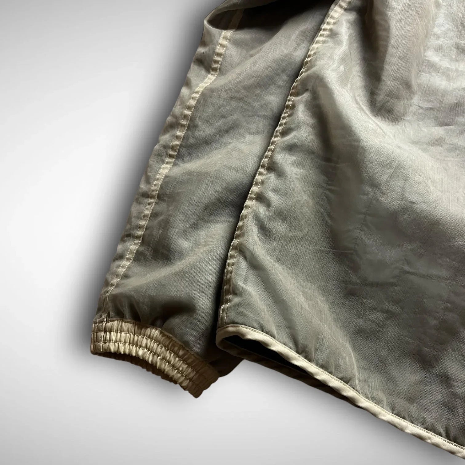 This Stone Island Monofilament Mesh Hooded Jacket from AW2003 is a rare archival piece showcasing the brand’s pioneering fabric technology. Crafted from monofilament nylon mesh, the translucent material gives it a lightweight yet structured feel, developing a unique patina over time. The jacket features contrast cream trims, a quilted lining for subtle insulation, and the signature Stone Island badge on the sleeve. A standout from one of the brand’s most experimental eras, this piece is a must-have for collectors and techwear enthusiasts.