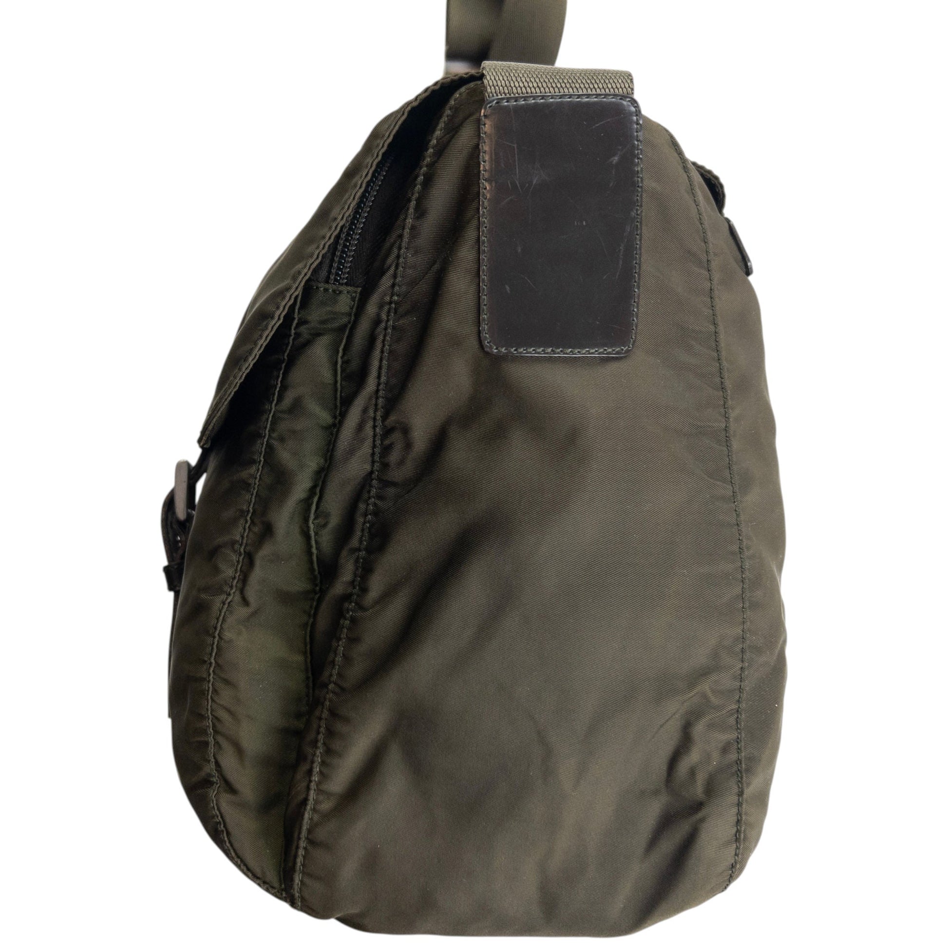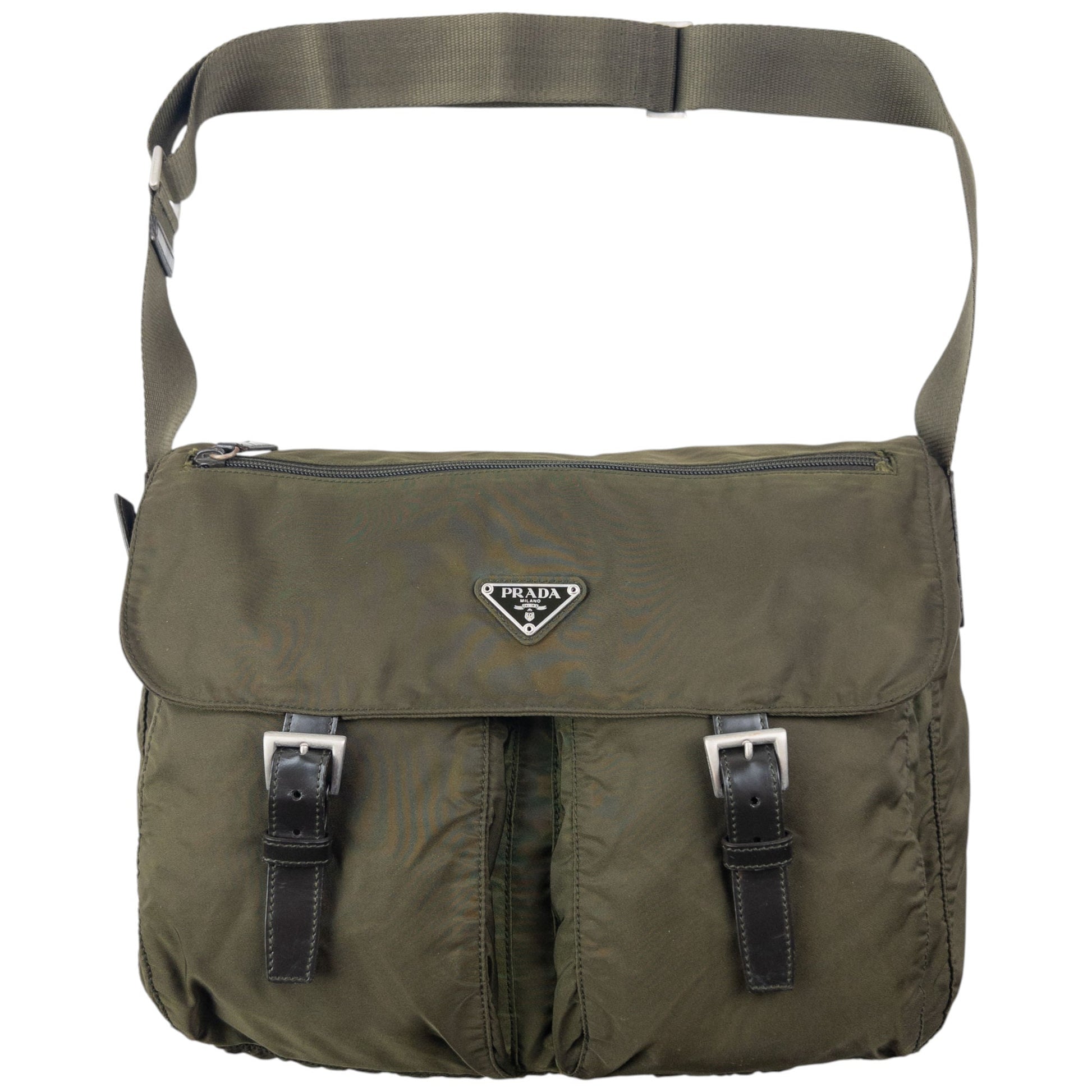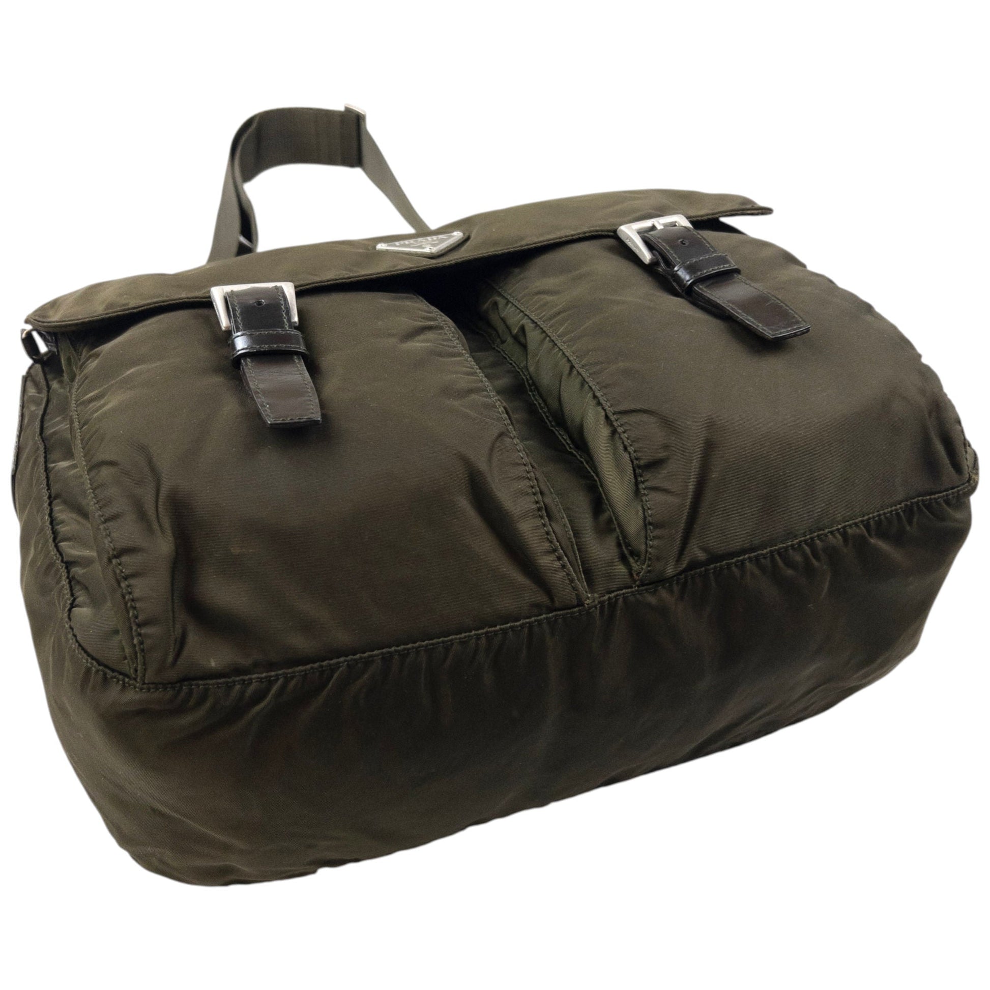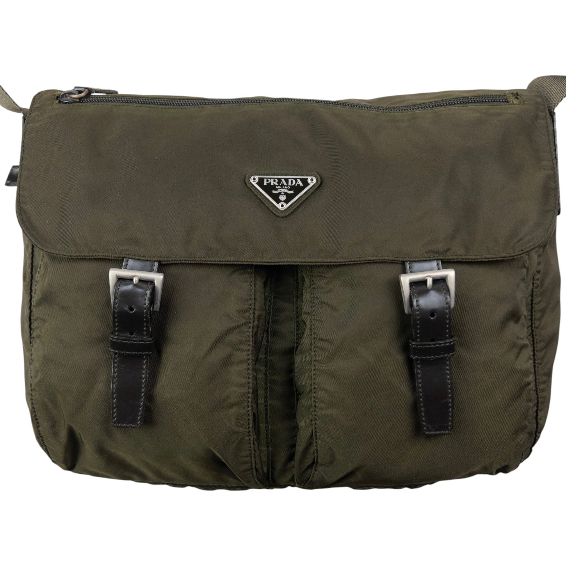 • Other info: Green colour, buckle cargo pockets, prada symbole plate detail, adjustable strap, minor general wear as seen