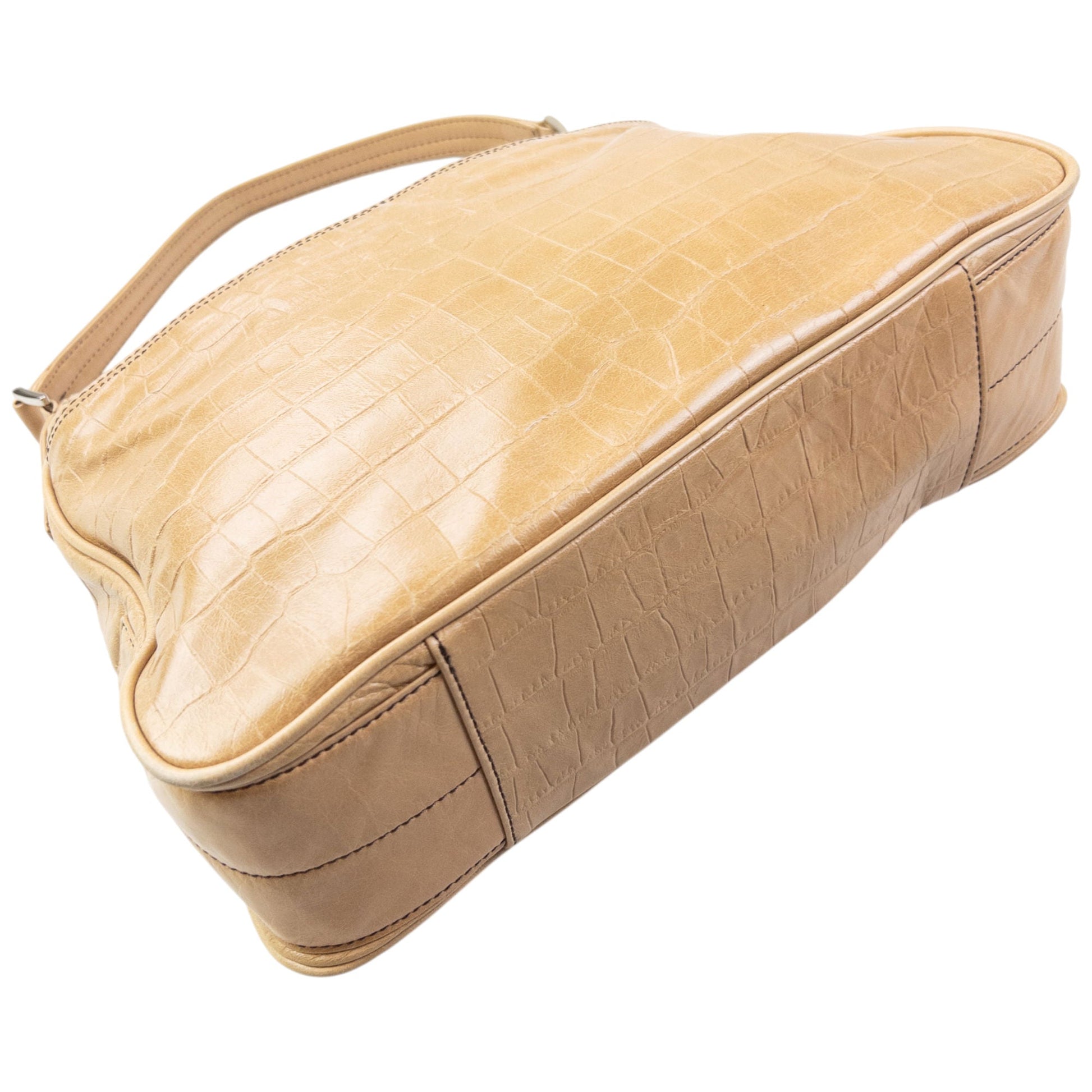 Vintage 90s Issey Miyake Crocodile Leather Shoulder Bag | O/S, Beige