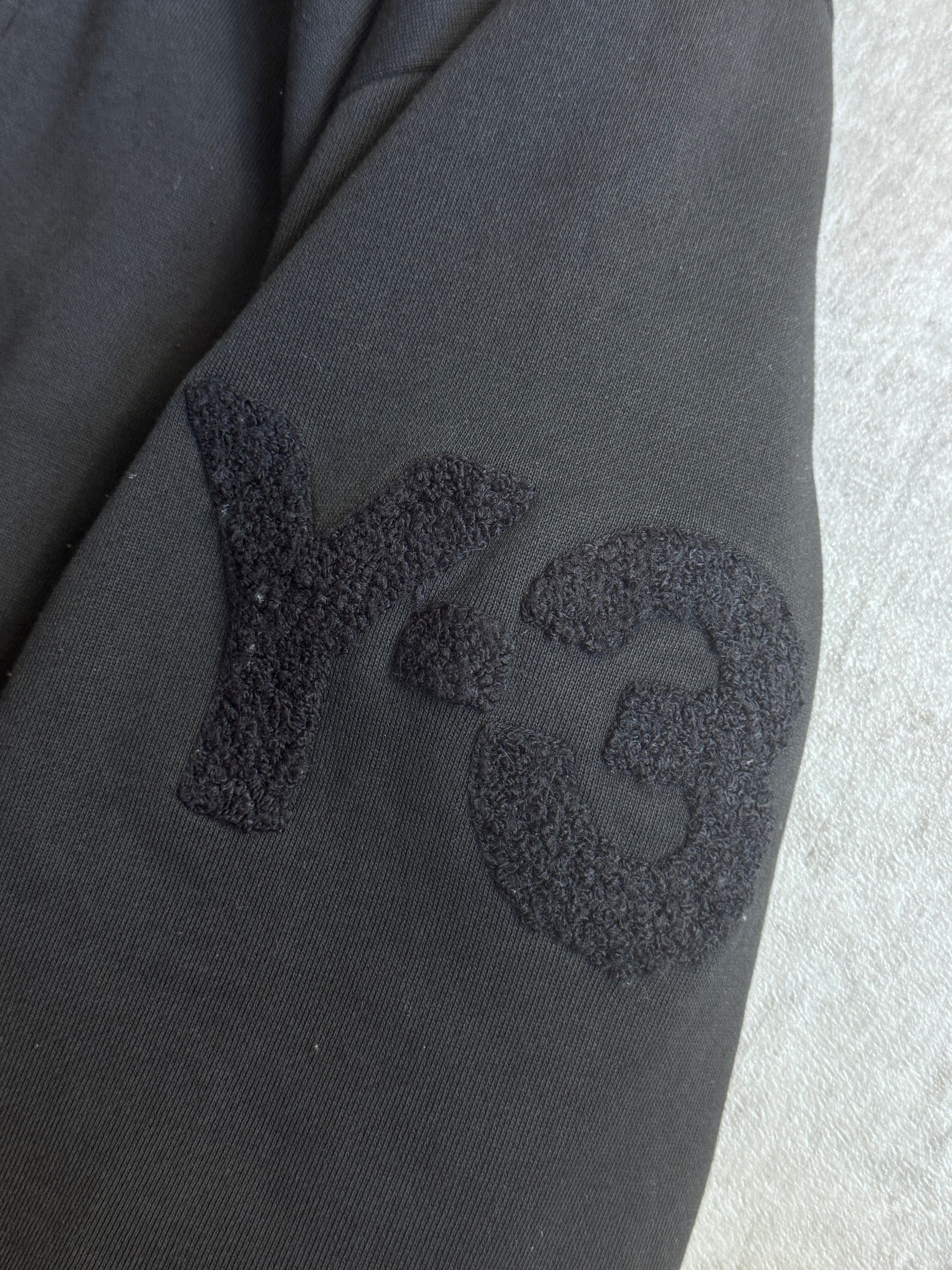 This Y-3 A/W 2006 Blackout Full Zip Ninja Hooded Sweatshirt is a striking example of the brand’s early avant-garde approach under Yohji Yamamoto’s direction. Crafted in heavyweight cotton jersey, this piece features a distinctive full-zip closure extending over the hood, creating a futuristic “ninja” silhouette that became a hallmark of Y-3’s early collections. The design blends sportswear functionality with Yamamoto’s directional tailoring, featuring oversized circular front pockets, structured ribbed trims, and a tonal chenille “Y” logo patch on the sleeve. The ergonomic cut and architectural hood construction showcase the brand’s fusion of performance and progressive style, embodying the pioneering aesthetic of Y-3’s formative years.