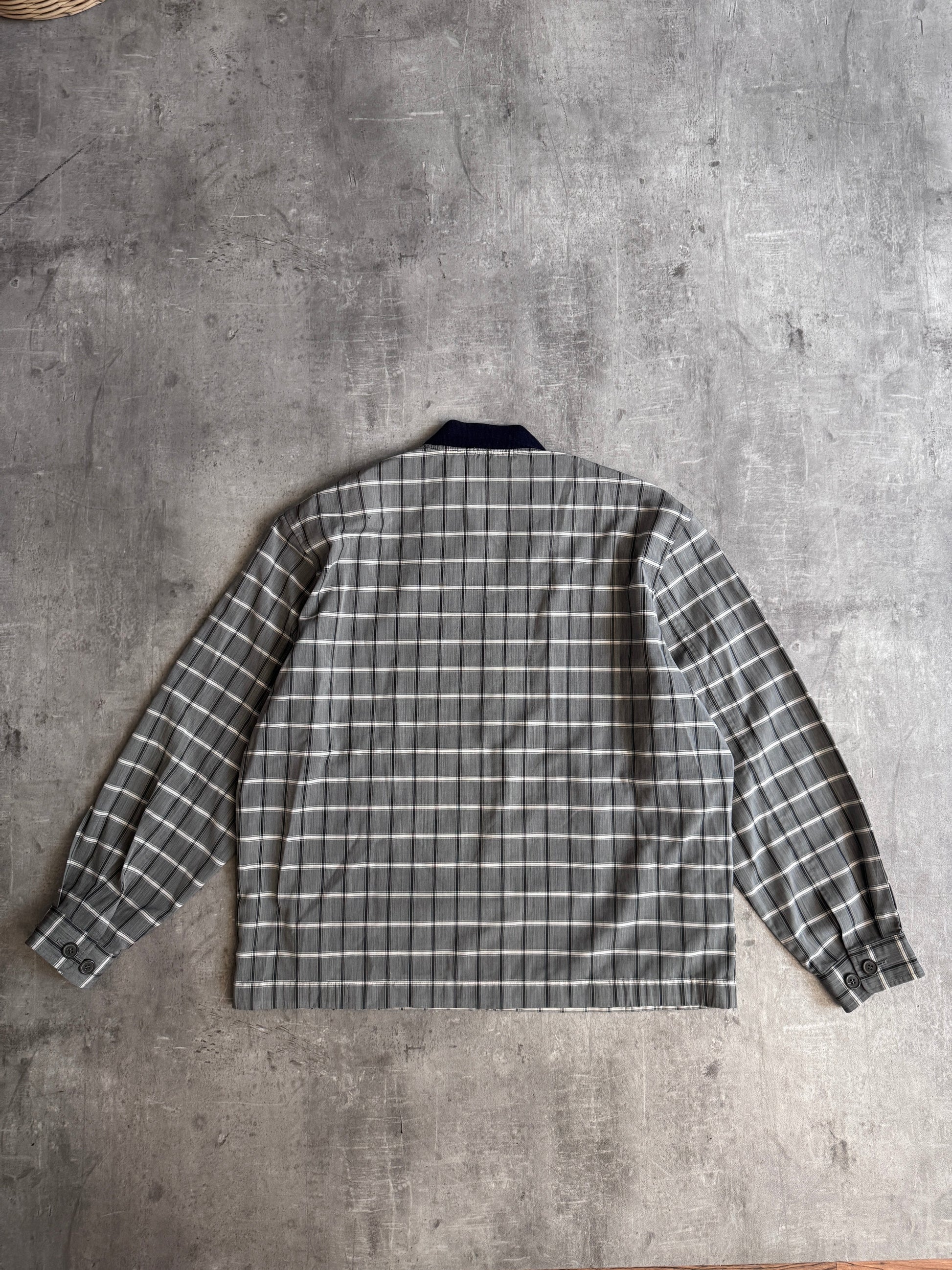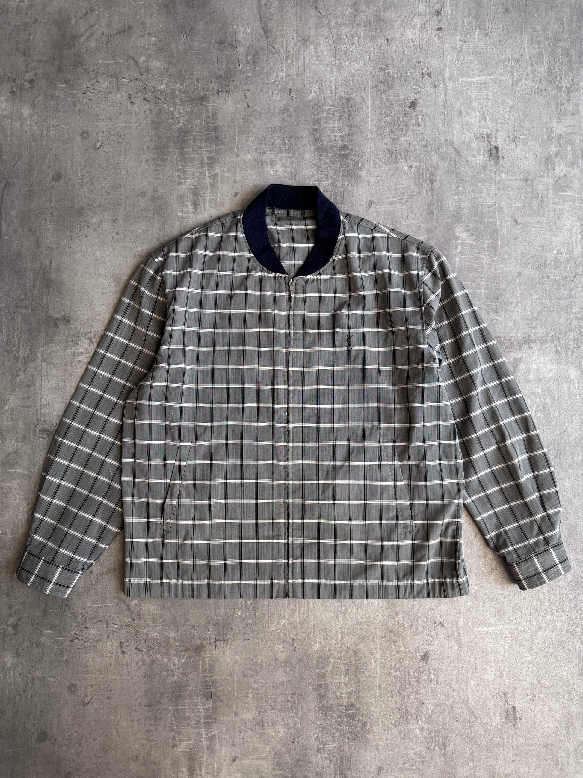 YSL Grey Check Lightweight Navy Detail Bomber Jacket (Sold As Seen)