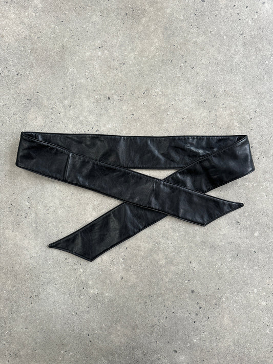 Vintage 1990s Faux Leather Tie Belt - One Size